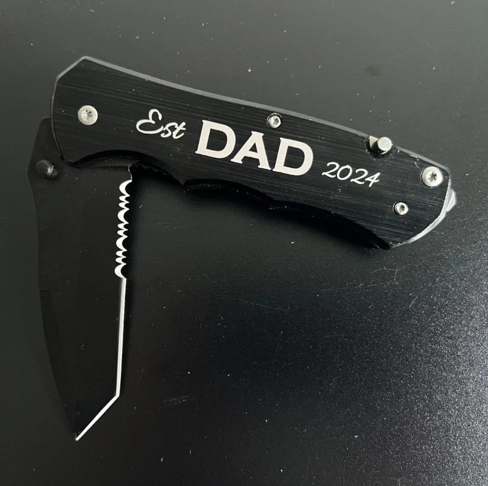 First Fathers Day Gift 2024 - Daddy Gift - Dad Est 2024 . Condition: NEW. 8" opened length, 4.75" closed length, 3.25" blade length. Strong STAINLESS STEEL 3MM Thick Blade. Good for Hunting, Fishing, Camping, Outdoor, Hiking, Emergency, Work, Utility use and DIY Activities. M ultiFunction tool: not just a knife, it also can be an emergency glass breaker and durable rope cutter. I do my best to ship same day, but all packages are handled within 1-2 business days. ๐ Disclaimer ๐ Must be 18 Years or Older to Purchase it, Check your local City and State law before purchasing it.