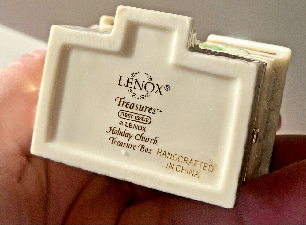 Original/Reproduction:OriginalSize:SmallColor:MulticolorNumber in Pack:1Brand:LenoxOccasion:ChristmasTime Period Manufactured:2000-2009Subject:ChurchRoom:Any RoomFinish:GlossyType:Trinket BoxPackaging:BoxFeatures:BoxedHandmade:NoCountry/Region of Manufacture:ChinaMaterial:Fine China