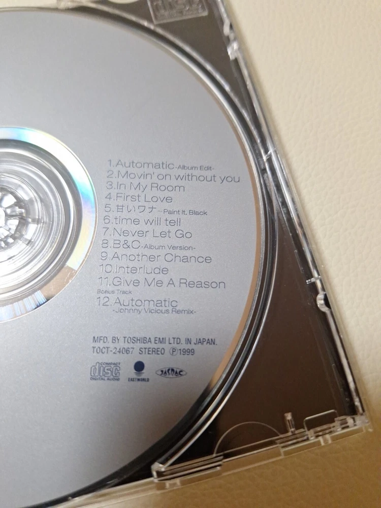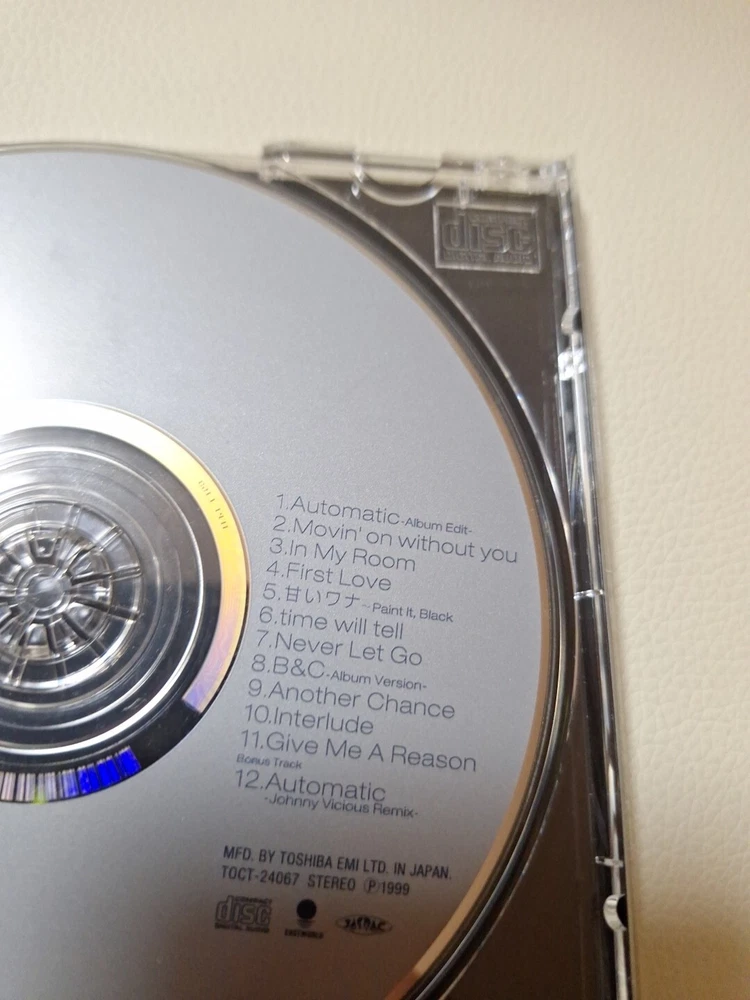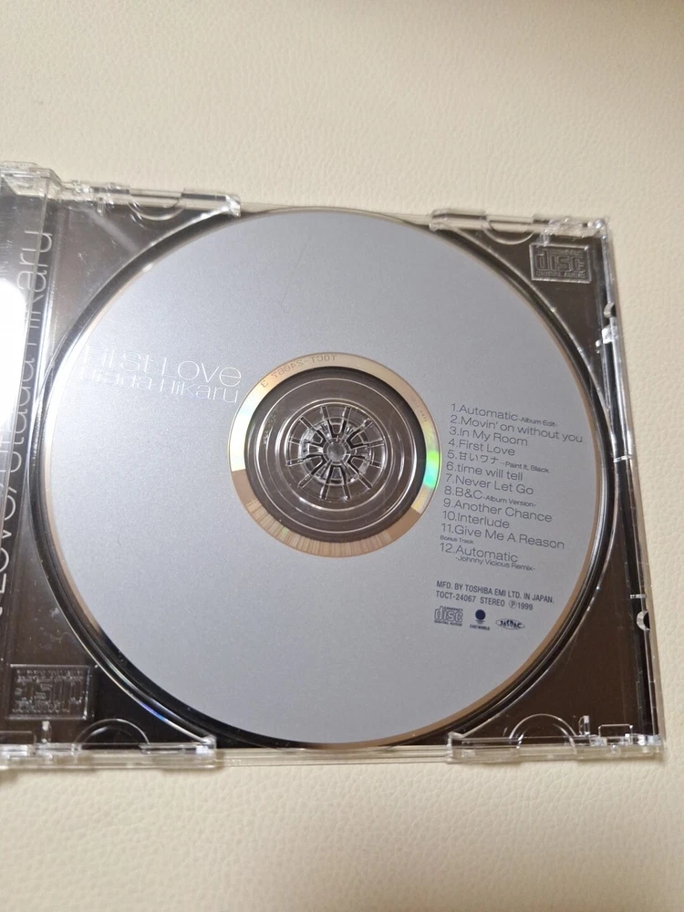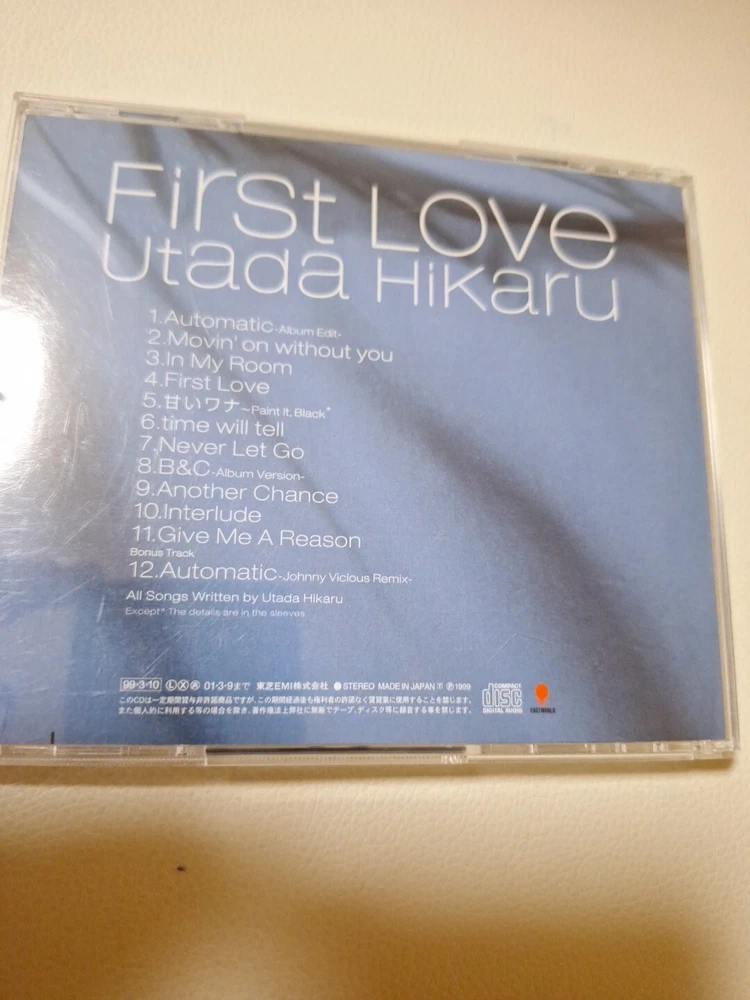 CD Grading: GOOD Style: 1990s EAN / JAN: 4988006158764 Release Title: First Love Genre: J-Pop Inlay Condition: Very Good (VG) Catalog Number: TOCT24067 gtin13: 4988006158764 Record Label: Eastworld Country/Region of Manufacture: Japan OBI Grading: GOOD Number of Discs: 1 Release Year: 1999 Format: CompactDisc Artist: Utada Hikaru Case Condition: GOOD Edition: First Edition Case Type: Jewel Case: Standard UPC: 4988006158764 Type: CD Color: Multicolor