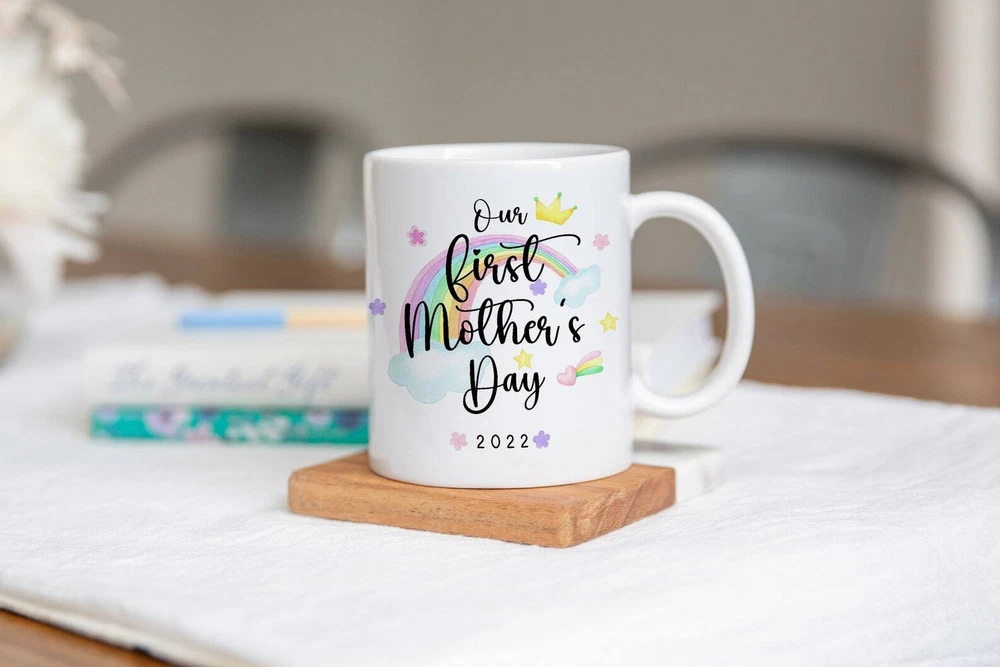 First Mother's Day Mug Rainbow Elephant Personalized Mother's Day Gift For New Product Details.. This high quality 11oz. ceramic white mug has a premium hard coat that provides crisp and vibrant color reproduction sure to last for years. Perfect for all hot & cold beverages. The highest quality printing possible is used. It will never fade no matter how many times you wash it. Material: 100% Ceramic. Print both sides. Dishwasher and Microwave Safe. High Gloss + Premium White Finish. Printed in the U.S.A. Personalized & Custom. We support personalized and custom mug to add custom, when placing an order, you can add notes to the "order note" in shipping address section. Also you can contact us directly via message. Shipping Info. Ready to ship in 1 to 2 business days, All products are made-to-order and proudly printed in the United States. Shipped by USPS and DHL, You will receive your order in 5-7 days. Replace & Refund. All products are defective during shipping broken, chipped will be replaced free of charge. You are not satisfied with the product, we will refund 100% money to you. If any other issues arise, please do not hesitate to message, we would be more than happy to assist you.