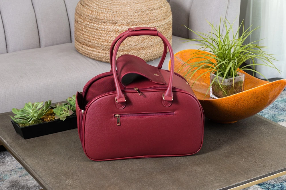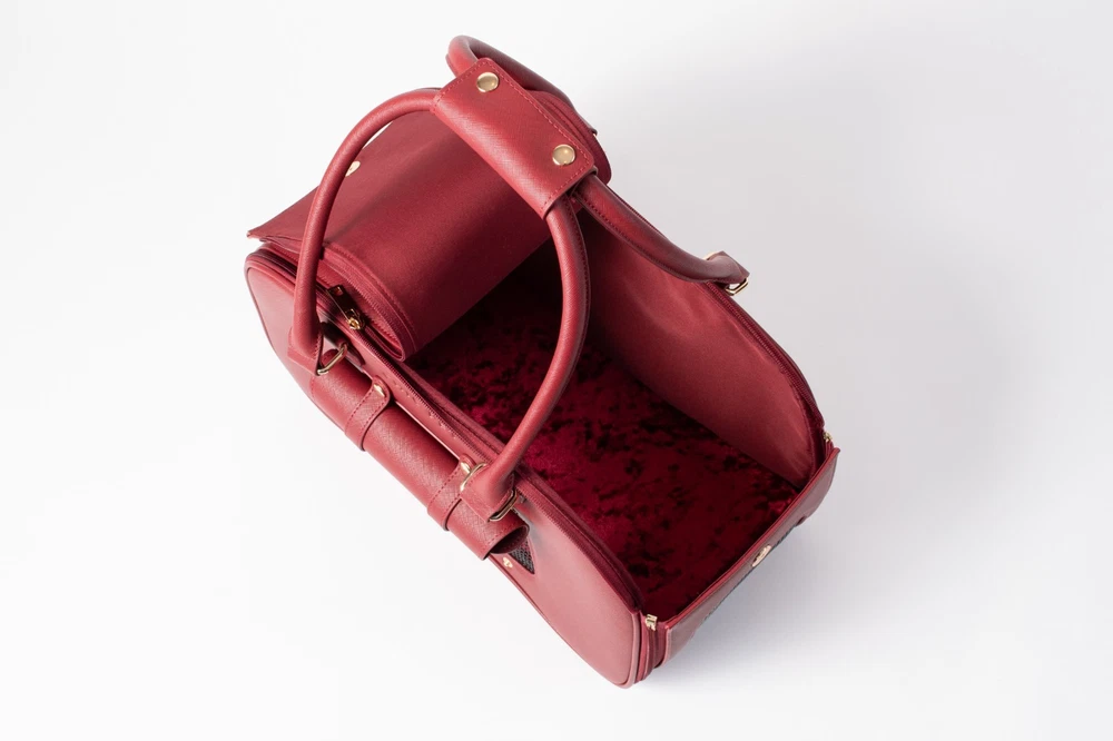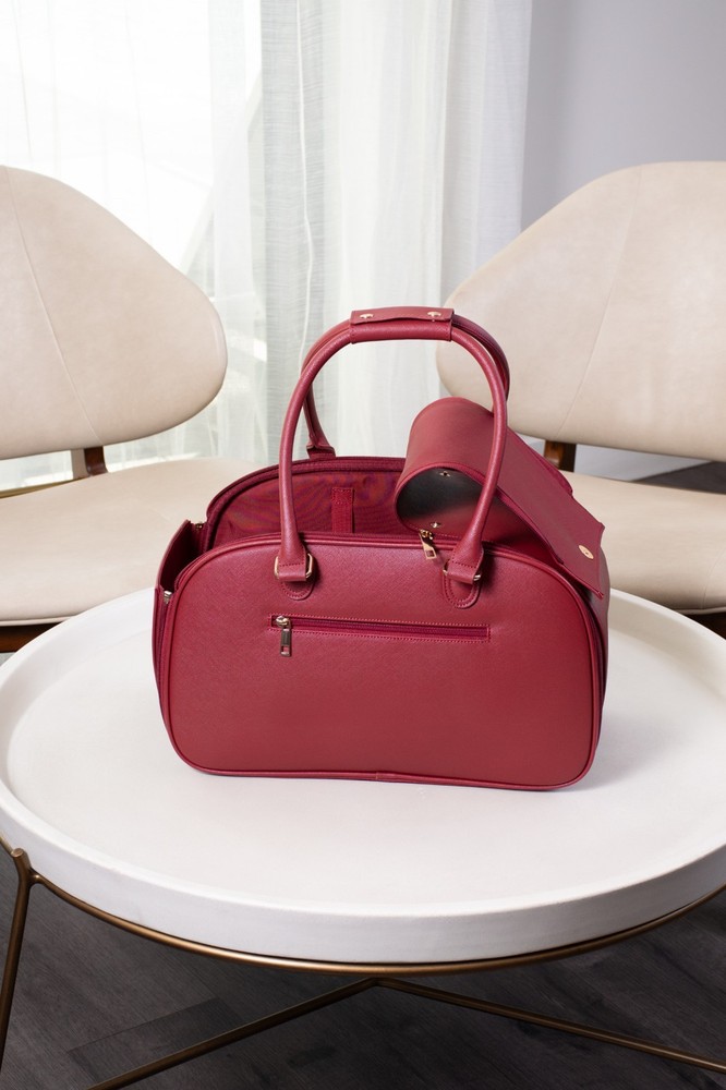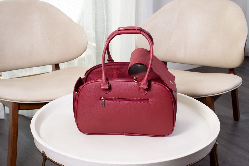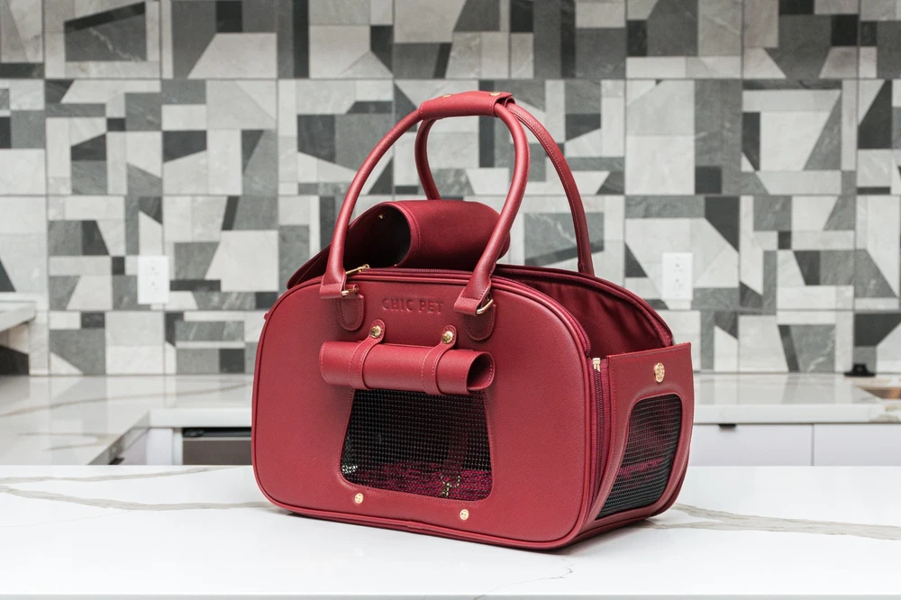About this item Breathable - First-class carrier pet bag is designed for breathability. Large front and side open mesh allow air to flow easily and your dog to breathe comfortably in the carrier. Airline approved - Approved by TSA as a compliant soft-sided carrier to take you puppy on board. Fits snuggly under airline seating letting your pup sit comfortably to their destination Easy to clean - Keep your carrier clean as new with ease. Use a damp wash cloth to wipe away any stain on the carrier’s exterior. With high quality material that is already stain-resistant keeping your bag clean as new is a breeze Made with quality - Extra strong zippers, handles and attachments. Every detail of this bag is meticulous and designed to last. From gold accents that don’t fade, button snaps that clasp shut, quality stitching that don’t leave loose threads Safety latch - Secure your pooch in the carrier with the built-in safety attachment. It hooks loosely on the collar, making sure they are secured to the bag while being able to move and turn comfortably Weight limit - Ideal for dogs 5-10 pounds. The carrier can fit dogs over 10 pounds but we recommend this limit to give them room to sit, lay or turn around comfortably in the carrier Dimension: 16"L x 8"W x 10"H Is it Airline Approved? Yes, this carrier is a TSA approved soft-sided pet carrier. What is it made from? The interior is made from polyester with leatherette on the outside, it's 100% non-toxic. How do I clean it when dirty? Do not machine wash. Use a damp cloth to wipe away spots or blemishes to preserve the it's longevity. Jennifer - ⭐️⭐️⭐️⭐️⭐️ Great bag! It's so convenient for when I travel, I love taking babba with me everywhere!