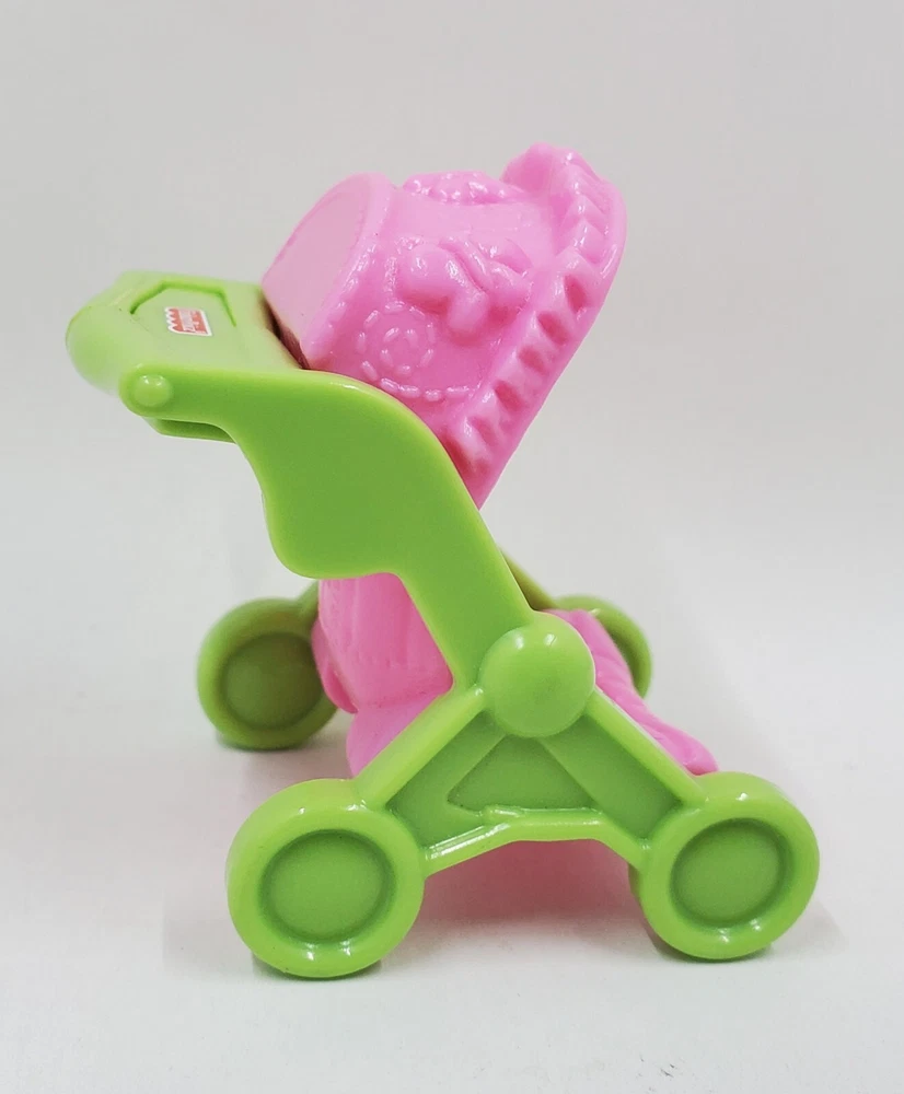 Fisher Price Loving Family pink and green baby stroller. In good preowned condition.