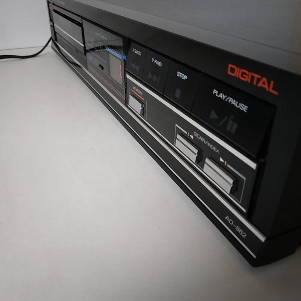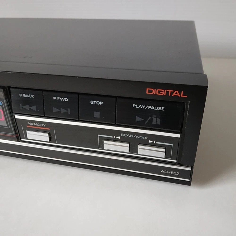 Features: CD Player Connectivity: N/A Audio Inputs: N/A Item Weight: 7 lb 10 oz Playable Media Format: CD Country/Region of Manufacture: Japan Screen Size: N/A Year Manufactured: 1986 Audio Outputs: Stereo L/R RCA Item Height: 3-1/2" Type: CD Player CD Changer Capacity: 1 Product Line: Sharp Storage Capacity: N/A Item Width: 11-1/2" Brand: Pioneer Item Length: 17-1/4" MPN: AD-862 Model: AD-862 Color: Black