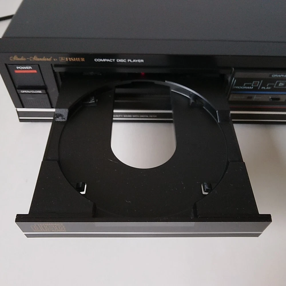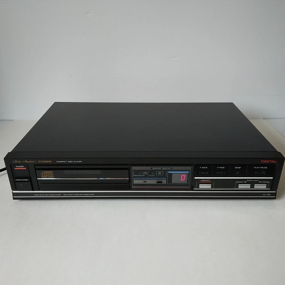 Fisher Studio Standard Model: AD-862. Made in Japan 1986. This shelf CD player has been tested (with speakers) on all functions and works well. 3rd photo shows testing with a small active speaker. Pictures 4 to 9 show a CD playing in the unit. This CD player is in very good cosmetic condition all around with minimal scratches. See pictures for a detailed look. Item will ship well protected. Thanks for the interest in this unit.