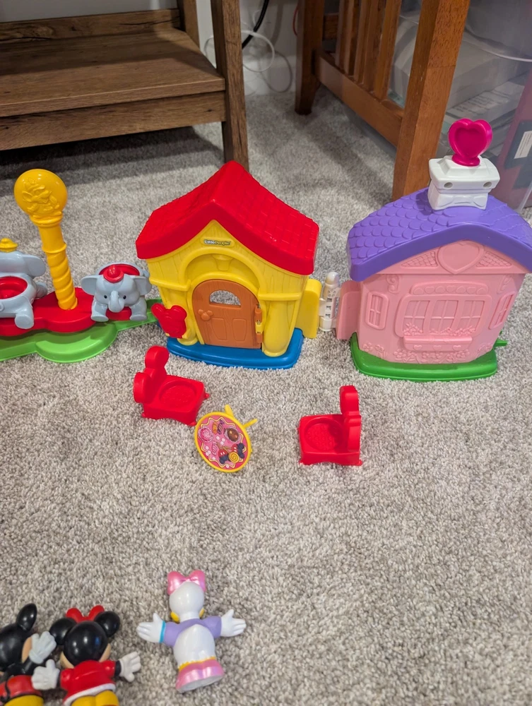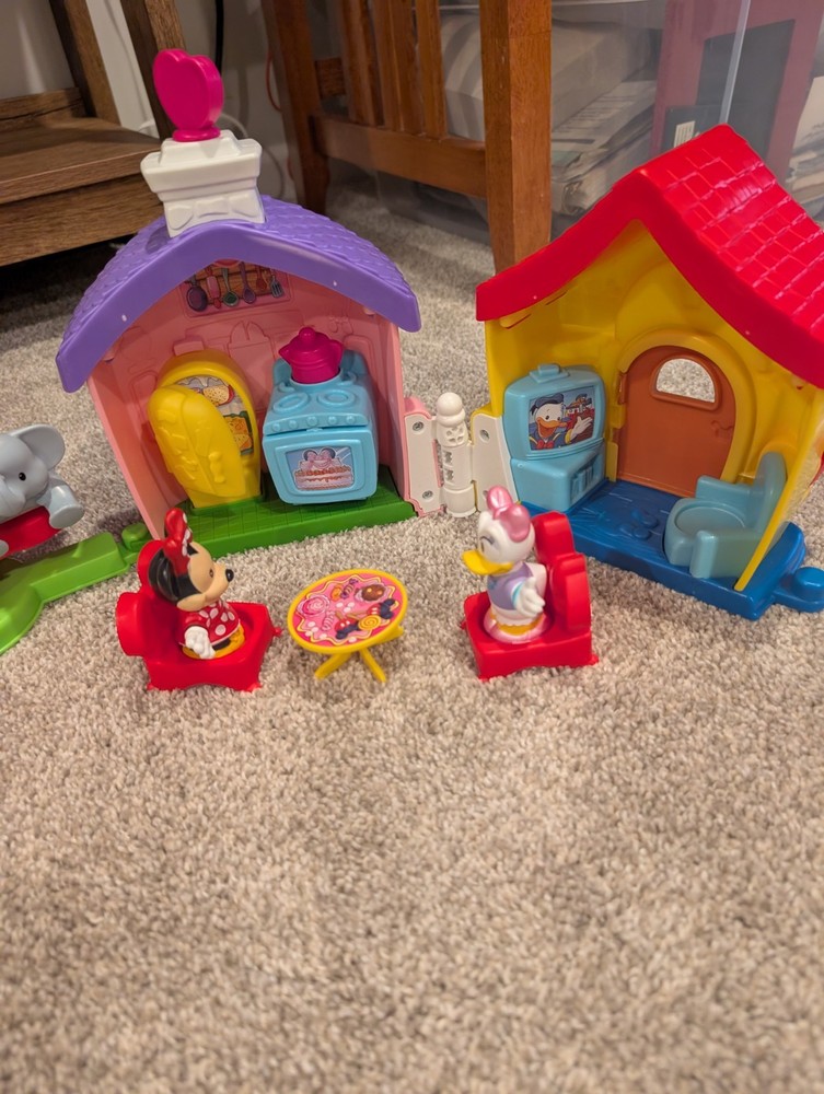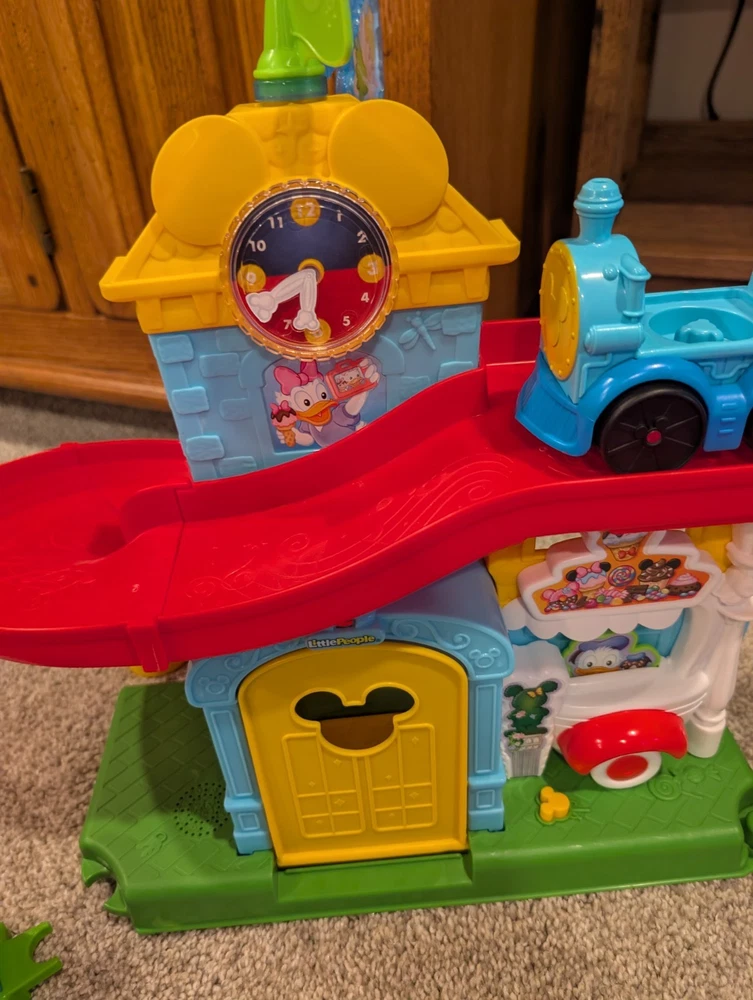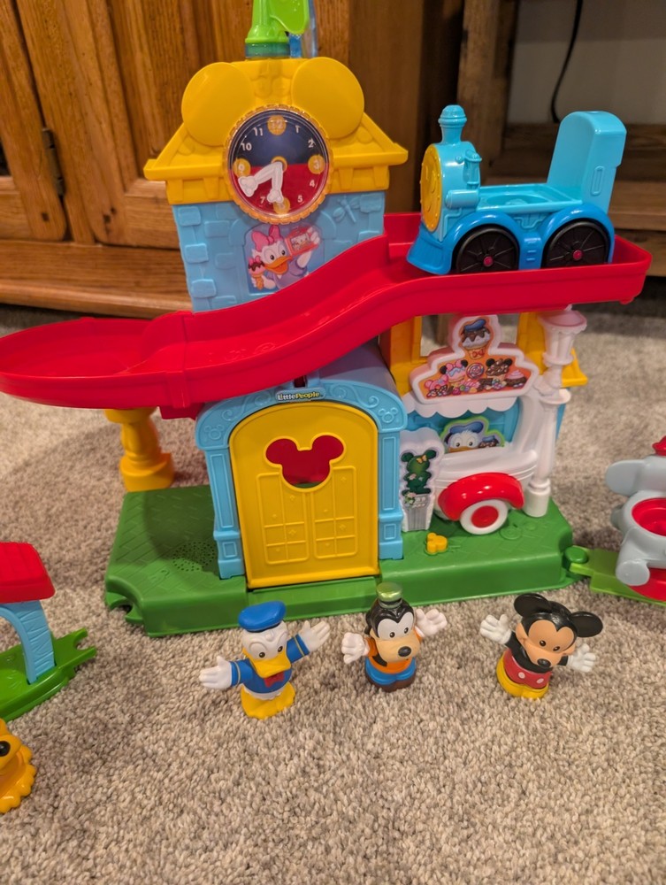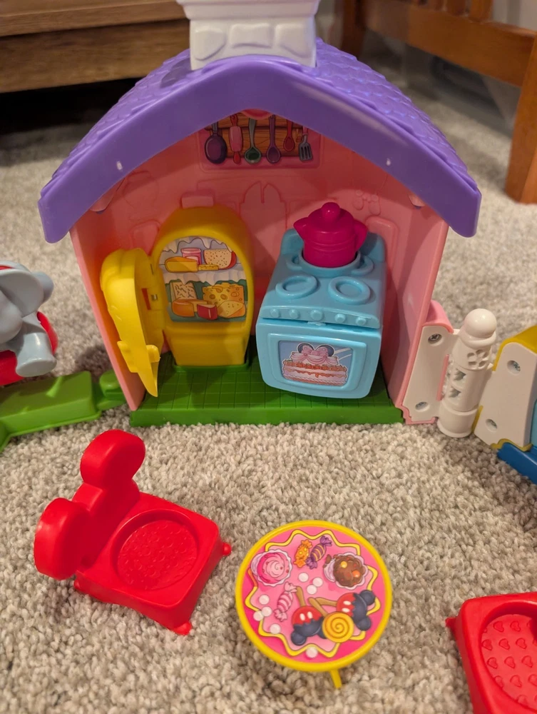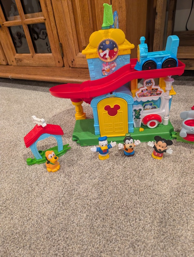 The Fisher-Price Little People Day at Disney/Mickey And Minnie house is a fun and interactive toy set designed for children aged 3-4 years. Featuring beloved characters from the Mickey Mouse & Friends family, this set allows kids to engage in imaginative play and create their own Disney adventures. With the trusted Fisher-Price brand behind it, this toy promises quality and entertainment for young children who love Mickey and Minnie. includes, Mickey, Minnie, Pluto, Donald Duck, Daisy, and Goofy. Sound works!