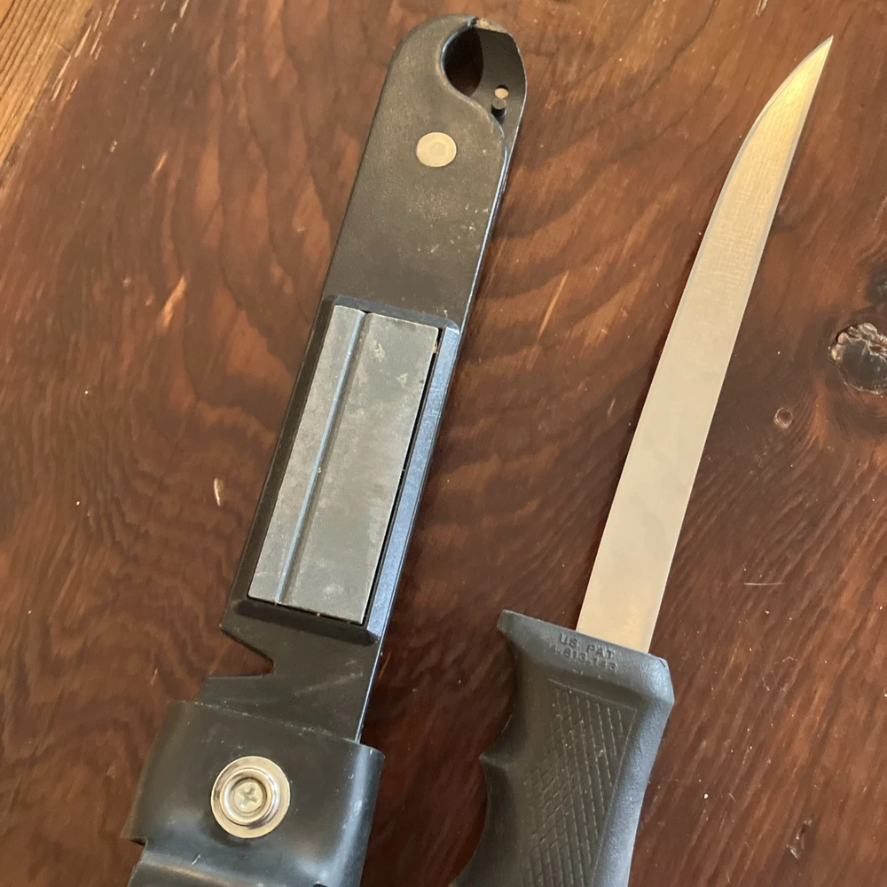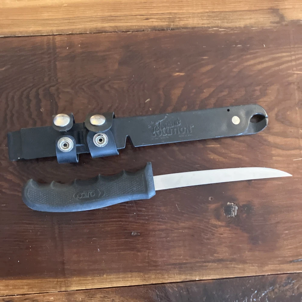 The Fisherman’s Solution Fillet Knife by Cutco is a high-quality, stainless steel knife made in the USA. It features a convenient belt clip for easy access while fishing. This unisex knife is designed specifically for fishing enthusiasts and includes a sharpener and sheath for added convenience. Perfect for outdoor adventures, this knife is a must-have for any angler looking for a reliable and durable tool to help with their catches.