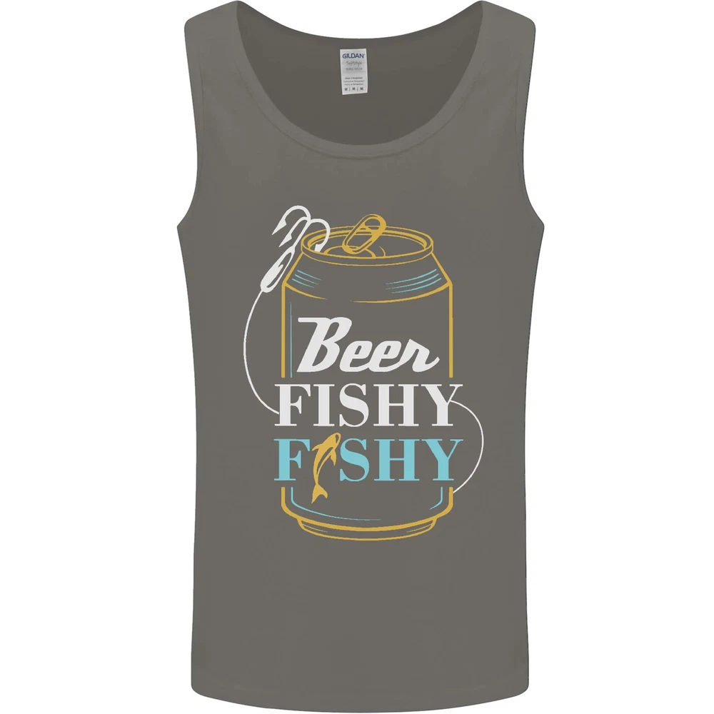 Fishing Beer Here Fishy Fisherman Funny Mens Vest Tank Top