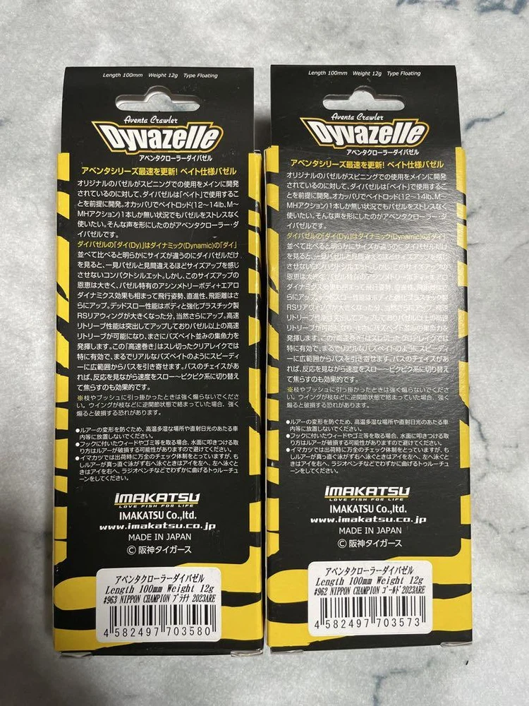 Item Title Fishing Lure Imakatsu Aventa Crawler Daibazel Hanshin Tigers Winning Commemorati Payment Supports managed payments Please pay within 5 days after auction is finished. About Us We are located in Japan. It's our pleasure to make you happy by proposing our recommend item. If you have any questions or request about items, please feel free to ask us. International Buyers - Please Note: -Import duties, taxes, and charges are not included in the item price or shipping charges. These charges are the buyer's responsibility. -Please check with your country's customs office to determine what these additional costs will be prior to bidding/buying. -These charges are normally collected by the delivering freight (shipping) company or when you pick the item up - do not confuse them for additional shipping charges. -We do not mark merchandise values below value or mark items as - gifts - The US and International government regulations prohibit such behavior. Thank you for your understanding.