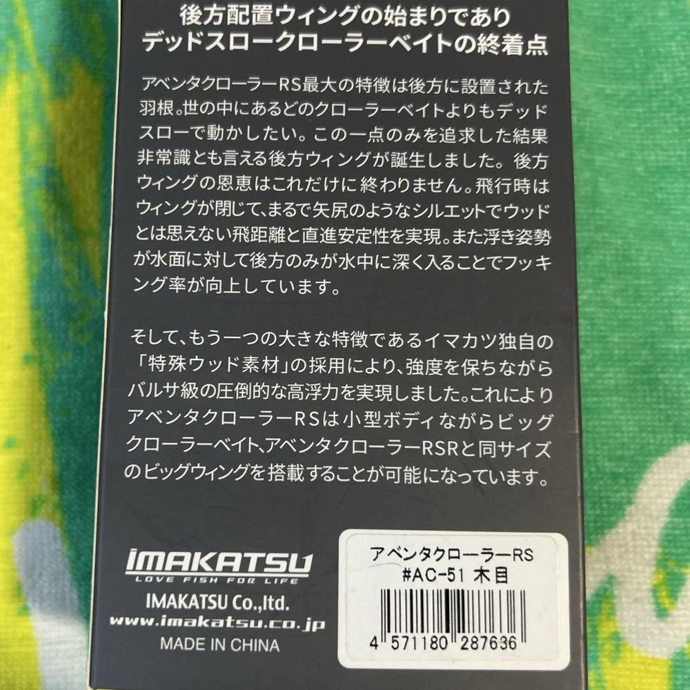 Maximum Diving Depth: NA Model: NA Bait Type: NA Country: Japan Item Weight: NA MPN: NA Fishing Type: NA Buoyancy: NA Features: NA Brand: Imakatsu / Imae Katsutaka UPC: NA Fish Species: NA gtin13: NA Material: NA Color: NA Number in Pack: NA Item Length: NA Country/Region of Manufacture: NA Bait Shape: NA