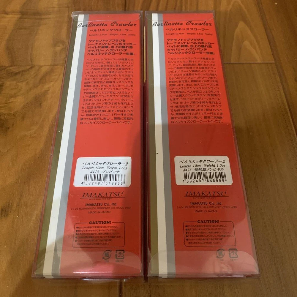 Item Title Fishing Lure Imakatsu Berlinetta Crawler 2 Set Payment Supports managed payments Please pay within 5 days after auction is finished. About Us We are located in Japan. It's our pleasure to make you happy by proposing our recommend item. If you have any questions or request about items, please feel free to ask us. International Buyers - Please Note: -Import duties, taxes, and charges are not included in the item price or shipping charges. These charges are the buyer's responsibility. -Please check with your country's customs office to determine what these additional costs will be prior to bidding/buying. -These charges are normally collected by the delivering freight (shipping) company or when you pick the item up - do not confuse them for additional shipping charges. -We do not mark merchandise values below value or mark items as - gifts - The US and International government regulations prohibit such behavior. Thank you for your understanding.