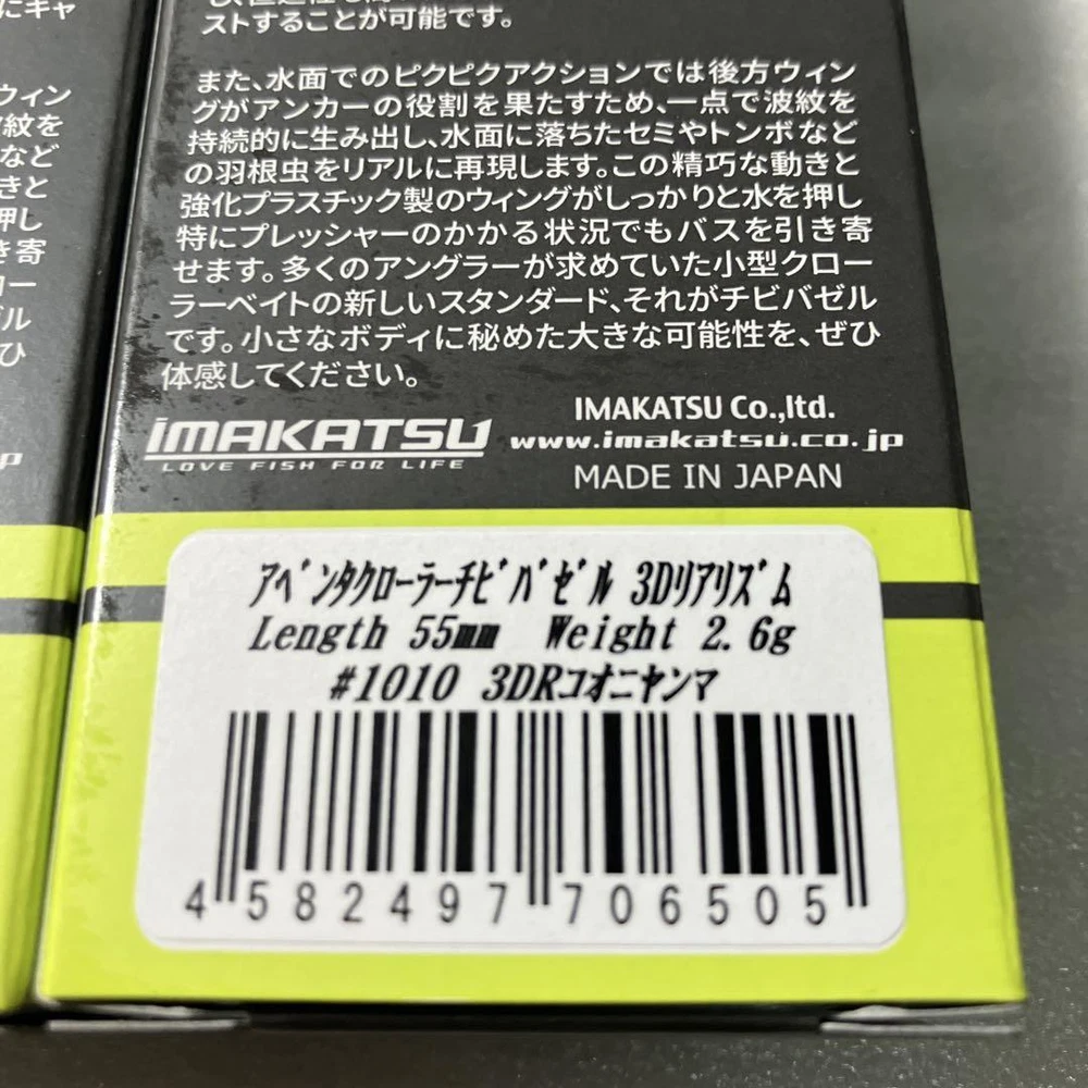 Item Title Fishing Lure Imakatsu Chibi Bazel Chiby Vazelle Avental Crawler Payment Supports managed payments Please pay within 5 days after auction is finished. About Us We are located in Japan. It's our pleasure to make you happy by proposing our recommend item. If you have any questions or request about items, please feel free to ask us. International Buyers - Please Note: -Import duties, taxes, and charges are not included in the item price or shipping charges. These charges are the buyer's responsibility. -Please check with your country's customs office to determine what these additional costs will be prior to bidding/buying. -These charges are normally collected by the delivering freight (shipping) company or when you pick the item up - do not confuse them for additional shipping charges. -We do not mark merchandise values below value or mark items as - gifts - The US and International government regulations prohibit such behavior. Thank you for your understanding.