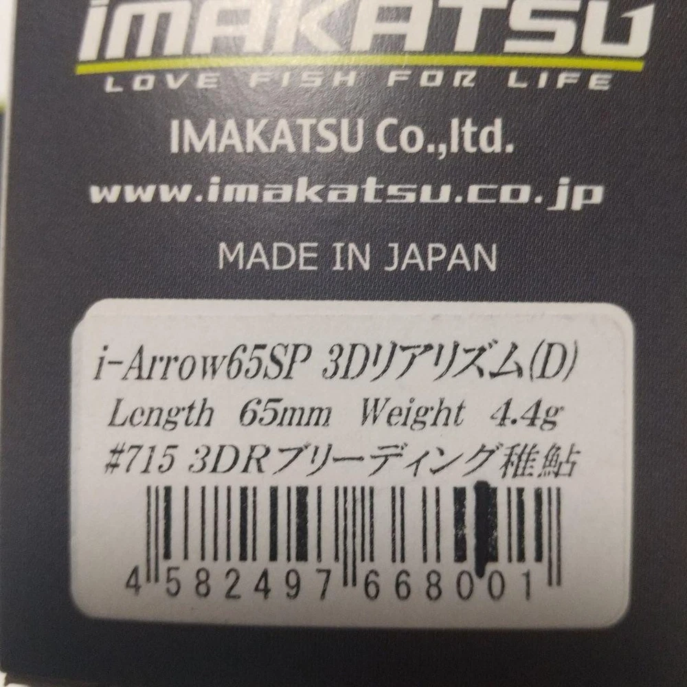 Item Title Fishing Lure Imakatsu Iia Low 65Sp 3D Realism D Doulor Hair 2 Points Payment Supports managed payments Please pay within 5 days after auction is finished. About Us We are located in Japan. It's our pleasure to make you happy by proposing our recommend item. If you have any questions or request about items, please feel free to ask us. International Buyers - Please Note: -Import duties, taxes, and charges are not included in the item price or shipping charges. These charges are the buyer's responsibility. -Please check with your country's customs office to determine what these additional costs will be prior to bidding/buying. -These charges are normally collected by the delivering freight (shipping) company or when you pick the item up - do not confuse them for additional shipping charges. -We do not mark merchandise values below value or mark items as - gifts - The US and International government regulations prohibit such behavior. Thank you for your understanding.