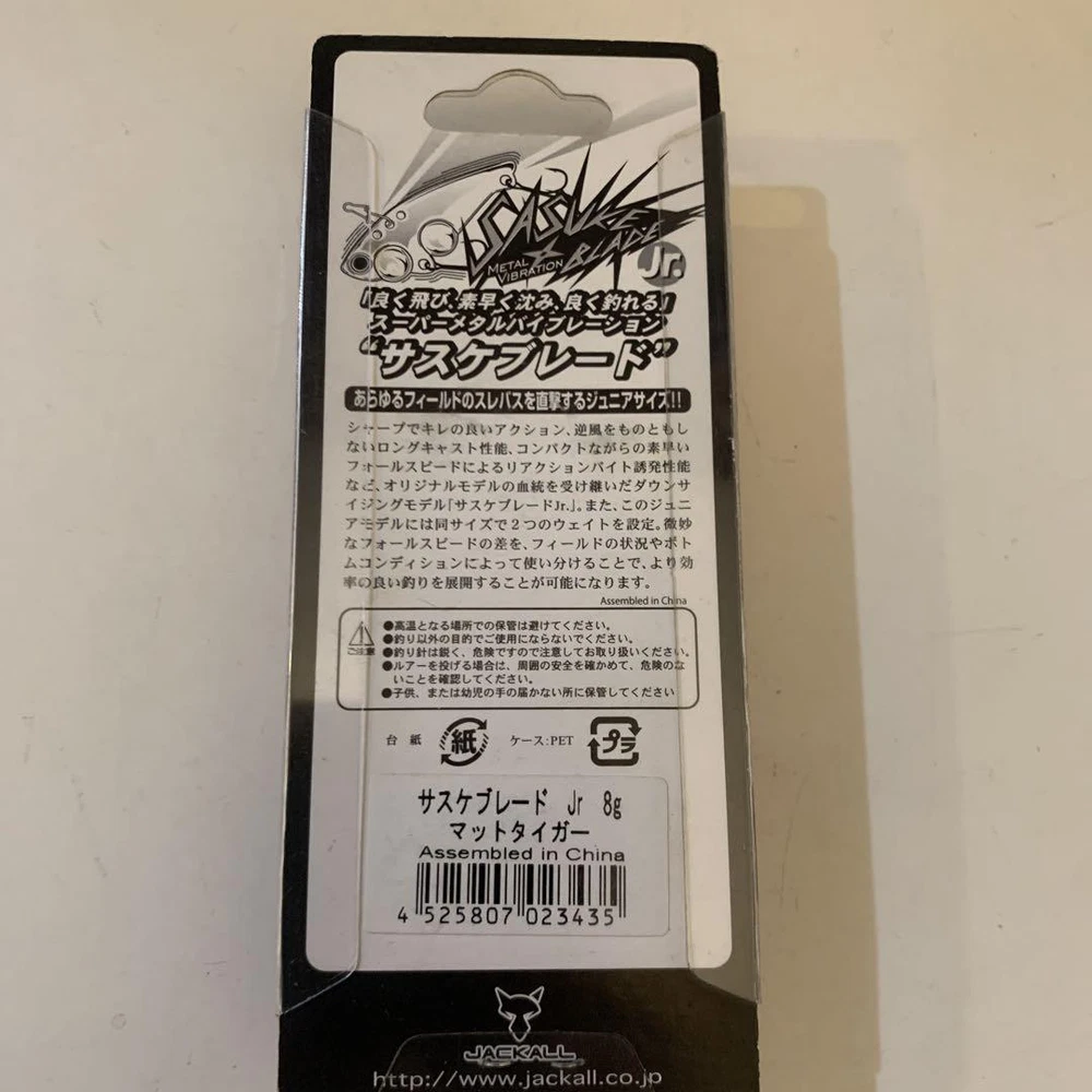 Item Title Fishing Lure Jackall Sasuke Blade Jr. 8G Payment Supports managed payments Please pay within 5 days after auction is finished. About Us We are located in Japan. It's our pleasure to make you happy by proposing our recommend item. If you have any questions or request about items, please feel free to ask us. International Buyers - Please Note: -Import duties, taxes, and charges are not included in the item price or shipping charges. These charges are the buyer's responsibility. -Please check with your country's customs office to determine what these additional costs will be prior to bidding/buying. -These charges are normally collected by the delivering freight (shipping) company or when you pick the item up - do not confuse them for additional shipping charges. -We do not mark merchandise values below value or mark items as - gifts - The US and International government regulations prohibit such behavior. Thank you for your understanding.