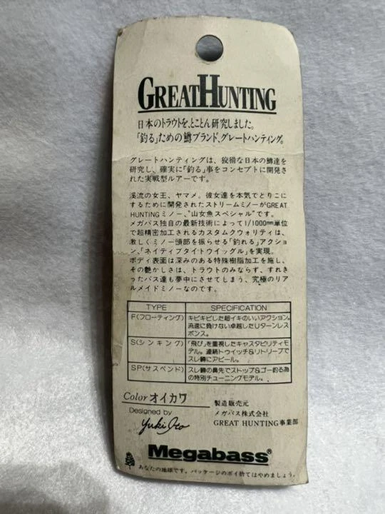 Item Title Fishing Lure Megabass Great Hunting 5Cm Yamana Special Oikawa Color Payment Supports managed payments Please pay within 5 days after auction is finished. About Us We are located in Japan. It's our pleasure to make you happy by proposing our recommend item. If you have any questions or request about items, please feel free to ask us. International Buyers - Please Note: -Import duties, taxes, and charges are not included in the item price or shipping charges. These charges are the buyer's responsibility. -Please check with your country's customs office to determine what these additional costs will be prior to bidding/buying. -These charges are normally collected by the delivering freight (shipping) company or when you pick the item up - do not confuse them for additional shipping charges. -We do not mark merchandise values below value or mark items as - gifts - The US and International government regulations prohibit such behavior. Thank you for your understanding.