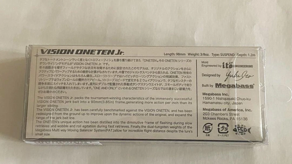 Item Title Fishing Lure Megabass Oneten Jr. Lure Payment Supports managed payments Please pay within 5 days after auction is finished. About Us We are located in Japan. It's our pleasure to make you happy by proposing our recommend item. If you have any questions or request about items, please feel free to ask us. International Buyers - Please Note: -Import duties, taxes, and charges are not included in the item price or shipping charges. These charges are the buyer's responsibility. -Please check with your country's customs office to determine what these additional costs will be prior to bidding/buying. -These charges are normally collected by the delivering freight (shipping) company or when you pick the item up - do not confuse them for additional shipping charges. -We do not mark merchandise values below value or mark items as - gifts - The US and International government regulations prohibit such behavior. Thank you for your understanding.