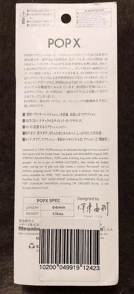 Item Title Fishing Lure Megabass Pop X Cmf Payment Supports managed payments Please pay within 5 days after auction is finished. About Us We are located in Japan. It's our pleasure to make you happy by proposing our recommend item. If you have any questions or request about items, please feel free to ask us. International Buyers - Please Note: -Import duties, taxes, and charges are not included in the item price or shipping charges. These charges are the buyer's responsibility. -Please check with your country's customs office to determine what these additional costs will be prior to bidding/buying. -These charges are normally collected by the delivering freight (shipping) company or when you pick the item up - do not confuse them for additional shipping charges. -We do not mark merchandise values below value or mark items as - gifts - The US and International government regulations prohibit such behavior. Thank you for your understanding.