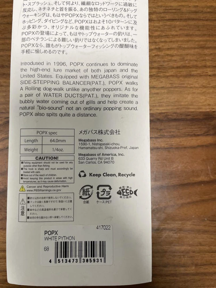 Item Title Fishing Lure Megabass Popx Color Payment Supports managed payments Please pay within 5 days after auction is finished. About Us We are located in Japan. It's our pleasure to make you happy by proposing our recommend item. If you have any questions or request about items, please feel free to ask us. International Buyers - Please Note: -Import duties, taxes, and charges are not included in the item price or shipping charges. These charges are the buyer's responsibility. -Please check with your country's customs office to determine what these additional costs will be prior to bidding/buying. -These charges are normally collected by the delivering freight (shipping) company or when you pick the item up - do not confuse them for additional shipping charges. -We do not mark merchandise values below value or mark items as - gifts - The US and International government regulations prohibit such behavior. Thank you for your understanding.