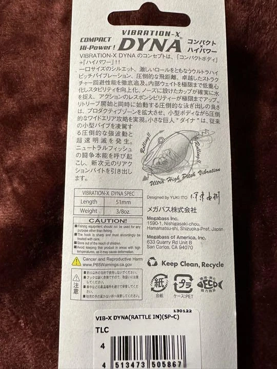 Item Title Fishing Lure Megabass Vibration-Xdyna Tlc Payment Supports managed payments Please pay within 5 days after auction is finished. About Us We are located in Japan. It's our pleasure to make you happy by proposing our recommend item. If you have any questions or request about items, please feel free to ask us. International Buyers - Please Note: -Import duties, taxes, and charges are not included in the item price or shipping charges. These charges are the buyer's responsibility. -Please check with your country's customs office to determine what these additional costs will be prior to bidding/buying. -These charges are normally collected by the delivering freight (shipping) company or when you pick the item up - do not confuse them for additional shipping charges. -We do not mark merchandise values below value or mark items as - gifts - The US and International government regulations prohibit such behavior. Thank you for your understanding.