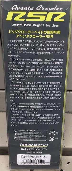 Item Title Fishing Lure Raid Japan G.I Imakatsu Aventa Crawler Payment Supports managed payments Please pay within 5 days after auction is finished. About Us We are located in Japan. It's our pleasure to make you happy by proposing our recommend item. If you have any questions or request about items, please feel free to ask us. International Buyers - Please Note: -Import duties, taxes, and charges are not included in the item price or shipping charges. These charges are the buyer's responsibility. -Please check with your country's customs office to determine what these additional costs will be prior to bidding/buying. -These charges are normally collected by the delivering freight (shipping) company or when you pick the item up - do not confuse them for additional shipping charges. -We do not mark merchandise values below value or mark items as - gifts - The US and International government regulations prohibit such behavior. Thank you for your understanding.