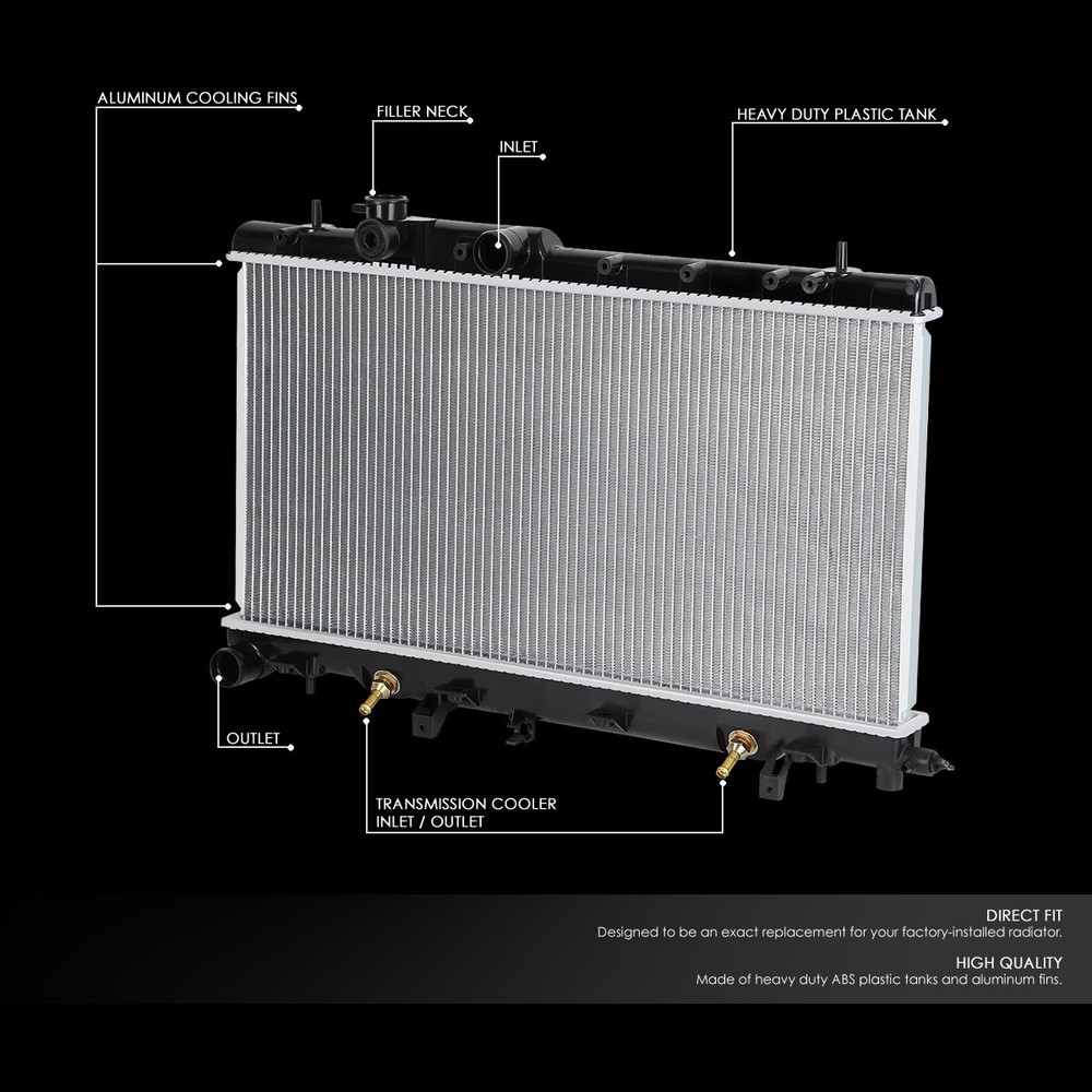 Welcome to our eBay store DPT Motorsport Business Hours: Monday - Friday, 9 AM to 6 PM PST. Store Home Payment Shipping Returns Need Help Add to Favorites About Us Fit 02-07 Subaru Impreza/Saab 9-2X 2.5 AT/MT OE Style Aluminum Radiator DPI 2464 Product Description This Aluminum Core Radiator is designed to provide maximum cooling efficiency to prevent premature engine failure. Its lightweight, and high-heat transferring aluminum features a tube and fin design that, dramatically increases surface area that enables the heat to dissipate more efficiently. Made From High-Quality Lightweight T-6061 Aluminum Aluminum Core to Improve Engine Cooling Performance OE Design for Optimum Heat Transfer, High-Pressure Resistance Direct Bolt-on Replacement with No Additional Time Consuming Steps Needed for Installation Tank Made of Reinforced Heat and Wearing Resisting PVC Material Core Dimensions: 26-7/8" W X 13-7/16" H X 15/16" D Inlet / Outlet Diamenter: 1-9/16" / 1-9/16" Installation Instruction is Not Included Includes: 1 X Radiator Notes: Compatible with: 02-07 Subaru Impreza 2.5 05-06 Saab 9-2X 2.5 Fits Automatic & Manual Transmission Models 100% Brand New Professional Installation is Highly Recommended Installation Instruction is NOT Included About Us Payment Shipping Returns Feedback Contact Us Have any questions or need info about something you already purchased? We'd love to hear from you! For items already purchased, please kindly include your eBay item number for faster response time. DPT Motorsport operates from Monday through Friday, 10 am to 6 pm (PST). ATTENTION: We are closed on Saturdays and Sundays. All messages will be replied in the order it was received during business days Thank you for choosing DPT Motorsport and happy bidding! We accept PayPal only. We reserve the right to file Non-Paying Bidder if payment is not received 10 days after the auction ended. Shipping Methods All shipments are made via either UPS or United States Postal Service depending on the types of products purchased. Majority of our orders will be ship within 2 business days (mostly within 24hrs) (All mail transit time stated above is best estimated but not guaranteed.) All shipments requires physical addresses, no PO Box address will be shipped. Shipping and handling charges are not negotiable. Return Policy **We stand behind the products we sell. If for any reason you are not satisfied with your purchase, we'll be happy to process a refund the product less S&H within 30 Days of your purchase. All return items will require a RMA number, which is given by our Customer Service Department only. Please allow 10-14 days for returns and exchange to be process. Please inspect all your order(s) upon receipt. All return items MUST be in brand new condition which means the item is never installed and kept in the original packaging. We will not reship replacement(s) before we get a claim approval for the lost or stolen item(s) or the returned item from customers. In most cases, all shipping and handling fees are non-refundable, unless it has been approved by our Customer Service Department. Any item(s) that the buyer states as defective will be tested by our Returns Department, if there is no problems or errors found during testing. Once the RMA# is issued, the buyer will have 30 days to return the item, if any items that is return after 30 days, the item(s) are subject for rejection. All items are brand new unless otherwise stated. PROFESSIONAL installation is highly recommended. Buyer assumes all risk on usage. About Us Have any questions or need info about something you already purchased? We'd love to hear from you! For items already purchased, please kindly include your eBay item number for faster response time. DPT Motorsport operates from Monday through Friday, 10 am to 6 pm (PST). ATTENTION: We are closed on Saturdays and Sundays. All messages will be replied in the order it was received during business days Thank you for choosing DPT Motorsport and happy bidding! Payment We accept PayPal only. We reserve the right to file Non-Paying Bidder if payment is not received 10 days after the auction ended. Shipping Shipping Methods All shipments are made via either UPS or United States Postal Service depending on the types of products purchased. Majority of our orders will be ship within 2 business days (mostly within 24hrs) (All mail transit time stated above is best estimated but not guaranteed.) All shipments requires physical addresses, no PO Box address will be shipped. Shipping and handling charges are not negotiable. Returns >Return Policy **We stand behind the products we sell. If for any reason you are not satisfied with your purchase, we'll be happy to process an exchange or refund the product less S&H within 30 Days of your purchase. All return items will require a RMA number, which is given by our Customer Service Department only. Please allow 10-14 days for returns and exchange to be process. Please inspect all your order(s) upon receipt. All return items MUST be in brand new condition which means the item is never installed and kept in the original packaging, otherwise you will be subjected to a 20% restocking fee. We will not reship replacement(s) before we get a claim approval for the lost or stolen item(s) or the returned item from customers. In most cases, all shipping and handling fees are non-refundable, unless it has been approved by our Customer Service Department. Any item(s) that the buyer states as defective will be tested by our Returns Department, if there is no problems or errors found during testing, there will be a mandatory 20% restocking fee for the price of the item. Once the RMA# is issued, the buyer will have 30 days to return the item, if any items that is return after 30 days, the item(s) are subject for rejection. If the items are returned without an RMA#, we reserve the rights to reject the item or charge the buyer a 20% restocking fee. All items are brand new unless otherwise stat