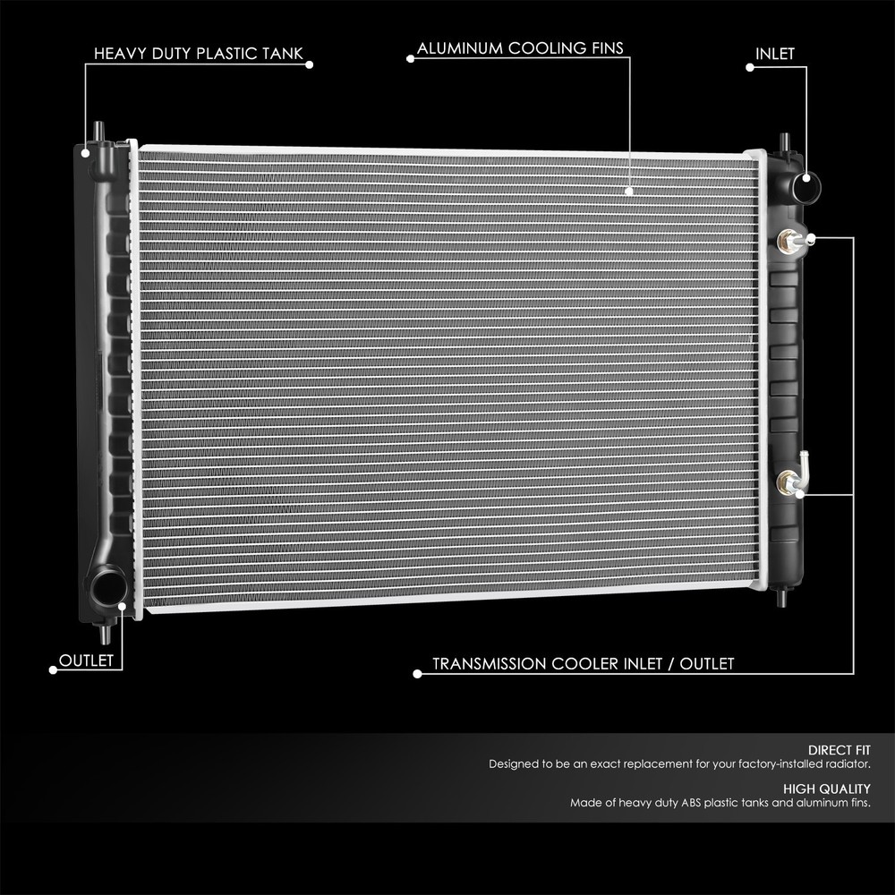 Welcome to our eBay store DPT Motorsport Business Hours: Monday - Friday, 9 AM to 6 PM PST. Store Home Payment Shipping Returns Need Help Add to Favorites About Us Fit 08-17 Nissan Murano Quest 3.5L OE Style Aluminum Core Radiator DPI 13406 Product Description This Aluminum Core Radiator is designed to provide maximum cooling efficiency to prevent premature engine failure. Its lightweight, and high-heat transferring aluminum features a tube and fin design that, dramatically increases surface area that enables the heat to dissipate more efficiently. OEM Replacement for the Stock Unit High Quality Full T-6061 Aluminum Construction Core Tank Made of Reinforced Heat and Wearing Resisting PVC Material Lightweight Direct Bolt-On OEM Fitment or Replacement Improves Cooling Efficiency Core Height (IN) : 26 3/8 Core Width (IN) : 17 7/8 Core Thickness (IN) : 1 Inlet Diameter (IN) : 1 3/8 Outlet Diameter (IN) : 1 3/8 Down Flow Or Cross Flow Type : Crossflow Transmission Oil Cooler Included : Yes Core Material : Aluminum Core Row Quantity : 1 Tank Material : Plastic Engine Oil Cooler Included : No Includes: 1 X Radiator Notes: Compatible with: Nissan Murano 2008-2014 Nissan Quest 2011-2017 3.5L 100% Brand New Professional Installation is Highly Recommended Installation Instruction is NOT Included About Us Payment Shipping Returns Feedback Contact Us Have any questions or need info about something you already purchased? We'd love to hear from you! For items already purchased, please kindly include your eBay item number for faster response time. DPT Motorsport operates from Monday through Friday, 10 am to 6 pm (PST). ATTENTION: We are closed on Saturdays and Sundays. All messages will be replied in the order it was received during business days Thank you for choosing DPT Motorsport and happy bidding! We accept PayPal only. We reserve the right to file Non-Paying Bidder if payment is not received 10 days after the auction ended. Shipping Methods All shipments are made via either UPS or United States Postal Service depending on the types of products purchased. Majority of our orders will be ship within 2 business days (mostly within 24hrs) (All mail transit time stated above is best estimated but not guaranteed.) All shipments requires physical addresses, no PO Box address will be shipped. Shipping and handling charges are not negotiable. Return Policy **We stand behind the products we sell. If for any reason you are not satisfied with your purchase, we'll be happy to process a refund the product less S&H within 30 Days of your purchase. All return items will require a RMA number, which is given by our Customer Service Department only. Please allow 10-14 days for returns and exchange to be process. Please inspect all your order(s) upon receipt. All return items MUST be in brand new condition which means the item is never installed and kept in the original packaging. We will not reship replacement(s) before we get a claim approval for the lost or stolen item(s) or the returned item from customers. In most cases, all shipping and handling fees are non-refundable, unless it has been approved by our Customer Service Department. Any item(s) that the buyer states as defective will be tested by our Returns Department, if there is no problems or errors found during testing. Once the RMA# is issued, the buyer will have 30 days to return the item, if any items that is return after 30 days, the item(s) are subject for rejection. All items are brand new unless otherwise stated. PROFESSIONAL installation is highly recommended. Buyer assumes all risk on usage. About Us Have any questions or need info about something you already purchased? We'd love to hear from you! For items already purchased, please kindly include your eBay item number for faster response time. DPT Motorsport operates from Monday through Friday, 10 am to 6 pm (PST). ATTENTION: We are closed on Saturdays and Sundays. All messages will be replied in the order it was received during business days Thank you for choosing DPT Motorsport and happy bidding! Payment We accept PayPal only. We reserve the right to file Non-Paying Bidder if payment is not received 10 days after the auction ended. Shipping Shipping Methods All shipments are made via either UPS or United States Postal Service depending on the types of products purchased. Majority of our orders will be ship within 2 business days (mostly within 24hrs) (All mail transit time stated above is best estimated but not guaranteed.) All shipments requires physical addresses, no PO Box address will be shipped. Shipping and handling charges are not negotiable. Returns >Return Policy **We stand behind the products we sell. If for any reason you are not satisfied with your purchase, we'll be happy to process an exchange or refund the product less S&H within 30 Days of your purchase. All return items will require a RMA number, which is given by our Customer Service Department only. Please allow 10-14 days for returns and exchange to be process. Please inspect all your order(s) upon receipt. All return items MUST be in brand new condition which means the item is never installed and kept in the original packaging, otherwise you will be subjected to a 20% restocking fee. We will not reship replacement(s) before we get a claim approval for the lost or stolen item(s) or the returned item from customers. In most cases, all shipping and handling fees are non-refundable, unless it has been approved by our Customer Service Department. Any item(s) that the buyer states as defective will be tested by our Returns Department, if there is no problems or errors found during testing, there will be a mandatory 20% restocking fee for the price of the item. Once the RMA# is issued, the buyer will have 30 days to return the item, if any items that is return after 30 days, the item(s) are subject for rejection. If the items are returned without an RMA#, we reserve the rights to reject the item or charge the buyer a 20% restocking