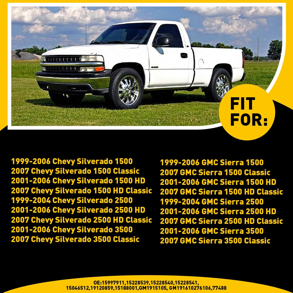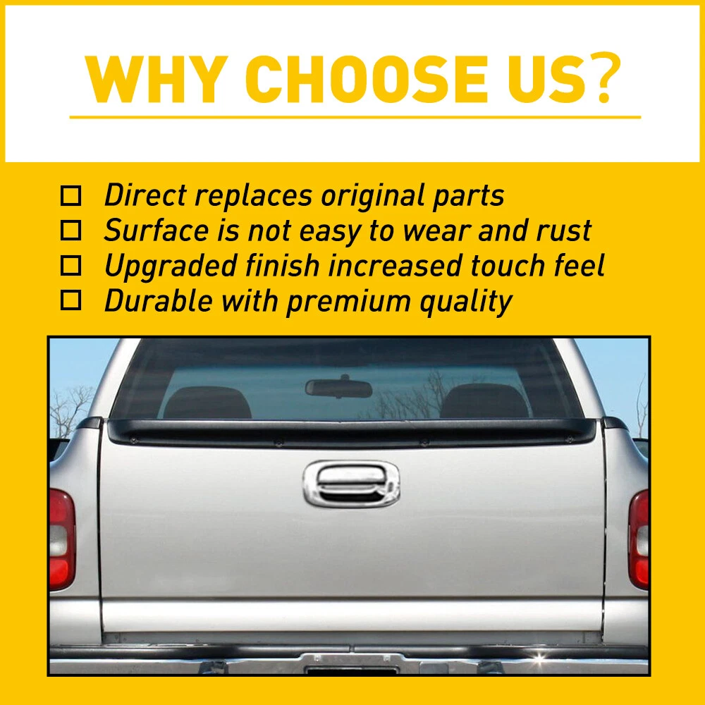 Fit for: 1999-2006 Chevy Silverado 1500 2007 Chevy Silverado 1500 Classic 2001-2006 Chevy Silverado 1500 HD 2007 Chevy Silverado 1500 HD Classic 1999-2004 Chevy Silverado 2500 2001-2006 Chevy Silverado 2500 HD 2007 Chevy Silverado 2500 HD Classic 2001-2006 Chevy Silverado 3500 2007 Chevy Silverado 3500 Classic 1999-2006 GMC Sierra 1500 2007 GMC Sierra 1500 Classic 2001-2006 GMC Sierra 1500 HD 2007 GMC Sierra 1500 HD Classic 1999-2004 GMC Sierra 2500 2001-2006 GMC Sierra 2500 HD 2007 GMC Sierra 2500 HD Classic 2001-2006 GMC Sierra 3500 2007 GMC Sierra 3500 Classic Specifications: Fit 1999-2006 Chevy Silverado 1500/GMC Sierra 1500 Tailgate Latch Handle & Bezel Fit for: 1999-2006 Chevy Silverado 1500 2007 Chevy Silverado 1500 Classic 2001-2006 Chevy Silverado 1500 HD 2007 Chevy Silverado 1500 HD Classic 1999-2004 Chevy Silverado 2500 2001-2006 Chevy Silverado 2500 HD 2007 Chevy Silverado 2500 HD Classic 2001-2006 Chevy Silverado 3500 2007 Chevy Silverado 3500 Classic 1999-2006 GMC Sierra 1500 2007 GMC Sierra 1500 Classic 2001-2006 GMC Sierra 1500 HD 2007 GMC Sierra 1500 HD Classic 1999-2004 GMC Sierra 2500 2001-2006 GMC Sierra 2500 HD 2007 GMC Sierra 2500 HD Classic 2001-2006 GMC Sierra 3500 2007 GMC Sierra 3500 Classic Specifications: OE number: 15997911, 15228539, 15228540, 15228541, 15046512, 19120859,15188001,GM1915105, GM1916102 76106,77488 Color:Chrome Features: *Perfect fit Comply With industrial standards, Use It With Confidence. *Strict Quality Control All of our handles undergo strict quality control not just before shipping but throughout the production process. *Durable Mainly made of high-quality plastic material to ensure the durability. Packaging include: Door handle*1 Item Specifics Primary Color Chrome Brand auxito Type Tailgate Handle,Performance Fitment Type Direct Replacement Color Chrome Manufacturer Part Number 15997911, 15228539, 15228540, 15228541, 15046512 Finish Chrome Material Plastic Metal Superseded Part Number 19120859,15188001,GM1915105, GM1916102 Placement on Vehicle Rear Store dyy_motor NOTICE Please double-check the part number and models FAQ ♥ If you have a decoding problem or any other problems, please contact us first, we will help you with it. We will reply you within 24 hours in working days. I'm a new seller, thanks a lot for your trust and convince! I will serve you with all my heart. ♥ Q1: Will this bulb fit my vehicle? A: We can match almost any vehicle to one of our bulb sizes. eBay only lets us include some vehicle fitments per listing, but if your vehicle does not show up on the compatibility table at the top of our listings, welcome you to contact us for free consulation before purchasing a product. Q2: My item has not arrived, what's taking so long? A: Sometimes items take longer than expected, especially if it’s going far or to rural area. Check with your post office to see if your item has been held up. Sometimes Royal Mail will not update a tracking number until it has arrived at its destination. If your item still don't arrive after a few days, let us know so we can double check for you and help solve it asap. Q3: My bulbs won't fit, help! A: Special bulb holder may be required. See if you can take the holder from the stock bulb. If not, let us know. The bulb size may be wrong, double check the item you received with the item you ordered. Do you have an aftermarket lighting housing? These may not be perfectly fitted for aftermarket bulbs and will require some manual modifications. Q4: Neither side lighting up? Both sides flicker, hyper flash, or work inconsistantly. A:Check the light fuses, and then check the ballast plugs to insure correct installation. If this doesn't work, there may be a voltage problem with the vehicle. You probably just need a relay or capacitor. Even though some bulbs are builtin resistors, they may still need a decoder. Pay & Ship (1). We gladly accepts payment via PayPal, We will ship your item(s) within 24 hours. (2). Before payment, please keep the consistency of Paypal address and ebay address. (3). Quantity orders are welcome! Returns (1). We offer 60 days free return policy. Please contact us within 60 days from the date you receive your order if you have any issues with the product or want return. Refund will be send after we got your resend package. (2). All returned items should be in the original packaging , return tracking information should be provided . Contact Us (1).Negative feedback will not help resolve any problems you have, please contact us via eBay messages before leaving negative feedback , our customer service will make best effort to help you with the issues. (2).We maintain high standards of excellenceand strive for 100% customer satisfaction! Feedback is very important to us. We request that you contact us immediately before you give us neutral or negative feedback, so that we can satisfactorily address your concerns. About us We're professional in car and motorcycle accessories, especially in LED bulbs. We have our own factory and R&D team. Our belief is to sell top quality items that fit your car and serve you with our heart. Anything please feel free to contact us! Our customer service is very responsibility. Come and follow us! DESCRIPTION NEW ARRIVED HOT SALE CONTACT US SAVE US Store Category Store Home Other Hot Item Interior Door Handle Front Right Left Passenger for 1998-03 Toyota Sienna Inside USD 9.99 Rear/Front Passenger/Driver Side Exterior Door Handle For Chevrolet Silverado USD 13.99 Door Handle For 1998-2003 Toyota Sienna Van Outside Front Left Driver Side Black USD 14.99 Front Left Front Handle Door Driver Side for 80645-CA000 2010-2013 Nissan Rogue USD 13.99 Front Left Door Handle Front Driver Side 80645-CA000 for 2010-2013 Nissan Rogue USD 17.99 New List Item for Nissan Infiniti Front / Rear Right Side Outside Door Handle USD 13.99 Outside Sliding Exterior Left Door Right Handle For 44661 Toyota Sienna LH RH US USD 9.99 1X Rear Door Handle For Chevrolet Avalanche Sil