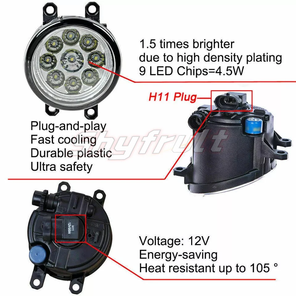 New Fog Lights Bumper Lamp Assembly Left & Right Bulb Fit For Toyota, Lexus etc. Feature 100% Brand New Complete set (both sides included) Fits OE# # 8121006071 & 8122006071 Designed as direct bolt-on replacement parts Made of high grade OE comparable materials to withstand rough road wear and the test of time Ideal for fog, snow, rain and for all night time driving Super bright bulbs are included for best light reflection Lens will never dull or discolor like the plastic lens Reuses factory power source and bumper for an awesome look Professional installation is a must Product Features Fog Lamps that give your car the enhancing style and a totally different look. Increase your visibility during heavy rain, snow, dense fog and night time driving. High Quality Fog Lamps made by approved manufacturers with materials that meet strict requirements. Professional Installation is Highly Recommended, No instruction included in the package. 1 Pair Fog Light , Left and Right Side with bulb included Specification: OE: 8121006071、8122006071、812200D041、812100D041、8122006070、8121006070 The light bulb: H11 Light Color: White Type of light: LED Lamp Wattage: 55W Lamp case color: ABS plastic black Waterproof: IP67 Package Includes 1 Pair of Fog Light Lamp Left Right Fit for: For 2010-2014 Toyota 4Runner For 2008-2014 Toyota Avalon For 2007-2014 Toyota Camry For 2009-2018 Toyota Corolla For 2008-2010 Toyota Highlander For 2009-2012 Toyota Matrix For 2010-2012 Toyota Prius For 2011-2014 Toyota Sienna For 2007-2008 Toyota Solara For 2012-2014 Toyota Tacoma For 2009-2014 Toyota Venza For 2007-2012 Toyota Yaris For 2006-2012 Toyota RAV4 For 2011-2014 Lexus CT200h For 2011-2015 Lexus GS350 /GS450h/GS460 For 2008-2013 Lexus IS-F/IS350/IS250 For 2013-2015 Lexus ES300h/ES350 For 2008-2013 Lexus LX570 For 2010-2014 Lexus RX350/RX450h For 2011-2013 Lexus HS250h Note: Please make sure the OE number matches the part you are replacing. If you can't find your car model in the list, please contact us. This is only part of compatible models. After service Notification: If you are satisfied with our product and service please leave us a positive feedback,if there is any problem when you received the package,please feel free to contact us,we will be definitely give you a satisfying solution,when you choose the return reason .please choose the reason"i don't like it". by this option we will accept your return immediately and provide return label for full refund. the others reason to return will take both of us many troubles to handle.