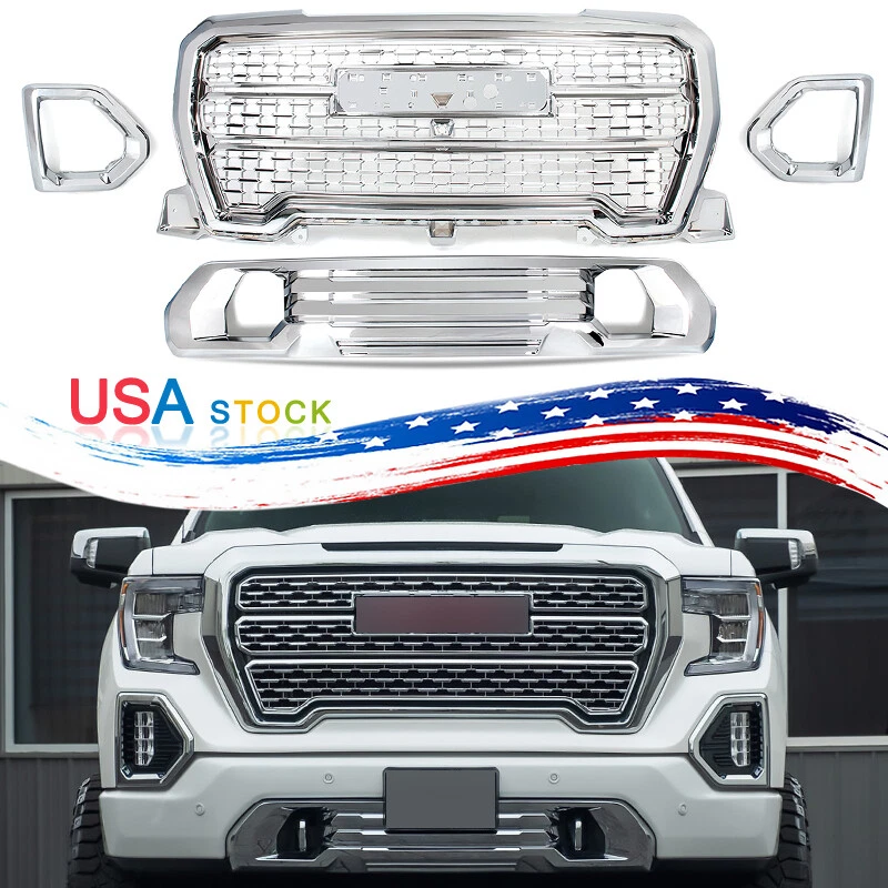 Fit 2019-2021 GMC Sierra 1500 Denali AT4 Front Bumper Grille Fog Lamp Bezel Trim We appreciate you place an order, If you are satisfied with the item and our total service, Please take a moment to leaving us a POSITIVE FEEDBACK and perfect " 5 STAR " scores, If you have any problem with your purchase,shipment,return/exchange,or any others, Please contact us firstly,so that we can satisfactorily address your concerns, We will give you our best item and service. Specification: Condition: 100% Brand New Color: Chrome Style: Denali Style Material: High Quality ABS Plastic Placement on Vehicle: Front,Upper,Lower,Left,Right Surface Finish: Painted Package Size:152*31*20cm(59.84"*12.20"*7.87") Gross Weight: 19.62LB (8.9KG) Features: - Easy install and durable use. - Great quality and great fitment. - 100% brand new and high quality guaranteed. - Strict quality control standards to build and test. - Useful,helpful and so practical. - Factory bolt-on fitment,no vehicle modifications are required. Fitment: Fit For GMC Sierra 1500 Denali 2019-2021 Fit For GMC Sierra 1500 AT4 2019-2021 Package Include: 4Pcs Front Grille&Fog Light Bezel Kit Note: -Please check the size measurement chart carefully before making payment. -Please allow 0.5-1 inch difference due to manual measurement.(1 inch=2.54cm) -The color of the actual items may slightly different from the listing images due to different computer screen, thanks for your understanding. -Instruction is not included. -Professional Installation Recommended. 1.We Accept Payment Through Paypal Only. 2.The eBay members must fulfill the requirement.(PayPal verified and confirmed address; the account holder must be the receiver). 3.Please complete your payment within 2 days after the item is won.If you have difficulty completing your payment within the required time, please contact us.Non-Pay Dispute will be filed against your account after the 2th day. 4.Our price does not include Duties,Value Added Taxes,Customs Clearance Fees,and other charges. These charges are the buyer's responsibility.Please check with your country's customs office to determine what these additional costs will be before bidding/buying. 5.The buyer needs to pay for the above fees in case that occurred for certain goods.If the parcel returns back to us due to the buyer refuse to pay those fees,we would not send the parcel again unless the buyer completes those fees and pay all the return and resend cost.The buyer can not cancel the order or request a refund due to this reason. 1.Free Shipping with FedEx/UPS/USPS to the Mainland 48 states ONLY 2.PO Box,AK/HI/PR and APO/FPO address will not be accepted. 3.Package will be shipped to your eBay shipping address within 48 hours(except for weekend and public holiday) after payment is cleared. 4.Payment cleared/received on Friday will be shipped on the next business days (Monday or Tuesday) 5.Order is typically shipped in 1-2 business day after payment is completed. Shipping confirmation with tracking number will be sent to your eBay email address when your order is shipped. Please note that we do not ship orders on Saturdays,Sundays,and national holidays. 6.All our items will be shipped to the address you submit, please confirm your address on before you bid or purchase. 7.Shipping time may vary depends on your area. Delivery may be delayed due to extreme weather or special circumstances. Please wait patiently. -All items sold by us are being described to the best of our abilities,as accurate as possible,and with utmost conscientiousness on our part.However,to avoid any potential oversights,we respectfully request your assistance in helping us to make this a mutually satisfactory transaction by THOROUGHLY reviewing item description and photos,and asking all questions PRIOR TO BIDDING. -We stand behind the quality of all of our products.All products are double inspected before stocking and dispatching.However,sometimes mistake may slip by and the product may get damaged during the process of delivery.If such trouble occurs to you,please take a minute to refer to the following instruction. -If the package arrives at your location with obvious shipping damage (including broken envelop,empty package and etc),please refuse the shipment. -If you find the item is defective after you accept the shipment,please save everything that is attached in the package,including all the documents,and contact us immediately,either through eBay message or email address. -You should state your item ID,item title and what the damage is clearly in your email.And please be advised that digital photos must be attached to the email you send. -And please bear in mind that you should contact us within 3 days since the day you receive the package,or it will be your own responsibility to take the lost of the defective item. Welcome to our Ebay store. We are professional of selling premium quality auto parts. All kinds of modified and aftermarket body parts for BMW,Benz,Ford,Audi,Jeep,Chevrolet and so on. For more details,please contact us. Thank you for your business. Certain images and/or photos used in this template are the copyrighted property of Macmillan digital publishing USA and are used with permission. Specification: Condition: 100% Brand New Color: Chrome Style: Denali Style Material: High Quality ABS Plastic Placement on Vehicle: Front,Upper,Lower,Left,Right Surface Finish: Painted Package Size:152*31*20cm(59.84"*12.20"*7.87") Gross Weight: 19.62LB (8.9KG) Features: - Easy install and durable use. - Great quality and great fitment. - 100% brand new and high quality guaranteed. - Strict quality control standards to build and test. - Useful,helpful and so practical. - Factory bolt-on fitment,no vehicle modifications are required. Fitment: Fit For GMC Sierra 1500 Denali 2019-2021 Fit For GMC Sierra 1500 AT4 2019-2021 Package Include: 4Pcs Front Grille&Fog Light Bezel Kit Note: -Please check the size measurement chart carefully before making payment. -Please allow 0.5
