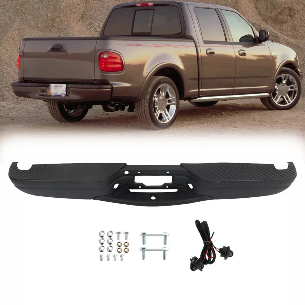 Fitment: Bumper Assembly For 1997 - 2003 Ford F-150 For Styleside Regular & Super Cab Models WITHOUT Park Assist Sensor Holes Package Content: 1x Pickup Rear Bumper with License Plate light 1X Bolts and Screws