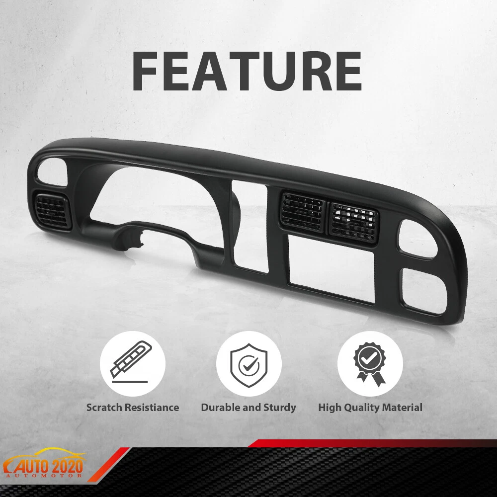 AUTOMOTO PRODUCT Fit For 1998-2002 Dodge Ram 1500 2500 Double Din 2-DIN Complete Dash Kit W/Vents Product Introduction Title: Dash Board bezel Application: Fit For 1998-01 Dodge Ram 1500 Fit For 1998-02 Dodge Ram 2500 Fit For 1998-02 Dodge Ram 3500 Description: 100% brand new and high quality Easy To Install and durable use. High Quality Materials and High Quality Product. Direct pricing by the factory, no price increase by the middleman. Limited life guarantee for workmanship and defects. No Installation Guide or Instruction Included. Color: Black Warranty: 1 Year Quantity: 1Set Material: ABS Package include: 1 Set Dash Board bezel Note: All of the items in our shop will come to you with the tracking number Visit shop home WELCOME to our ebay shop CONTACT US We Open 7 Days A Week ABOUT US ABOUT US: Welcome to GPLUS's eBay Store. We specialize in aftermarket automotive car parts and is the #1 industry distributor for affordable and quality products. Welcome to GPLUS's eBay Store. We specialize in aftermarket automotive car parts and is the #1 industry distributor for affordable and quality products. Welcome to GPLUS's eBay Store. We specialize in aftermarket automotive car parts and is the #1 industry distributor for affordable and quality products. SHIPPING Shipping Information All items will ship within 24 hours (Monday - Friday). Payment cleared/received on Friday will be shipped on the next business days (Monday or Tuesday). We are not responsible for carrier transit time. This information is provided by the carrier and excludes weekends and holidays. Note that transit times may vary, particularly during peak periods or in climate weather conditions, and that delivery times frames will need to be extended for any processing time frames in excess of 1-2 business days. excess of 1-2 business days. International Shipping: International buyers are responsible for possible customs fees, brokerage fees or duty fees. We would appreciate for understanding of tracking number would not be updated in between the city of departing in the U.S. and the city of destination. ATTENTION Cargo transportation Double check shipping address. We are not responsible for incorrect or undeliverable addresses. Please use Shipping & Payments tab on top of page for shipping details for your location. Transaction will be held until a full shipping amount received. Shipping address Some of the packages cannot be delivered to a PO Box. Customer is responsible to ensure PO Box address given is deliverable by the shipping company. Package will be held until a valid physical address is provided. Customer assumes shipping charges incurred in shipping to undeliverable address. Customs duties International buyers are responsible for all customs duties, taxes, and other applicable fees incurred by the country's customs/border regulations. Please contact customs for more information. We are not responsible for any changes to address after item has been shipped. RETURN please notify us within 30 days after you've received your purchased item. Return Policy: Buyers pay for return shipping fee. Items to be returned must be in resalable condition.14 Days money back, please notify us within 14 days after you've received your purchased item. If your order has been received and it is not what you ordered, or if your item has a manufacturer defect, please contact us within 14 days from delivery date. And you must contact us to request an Return Merchandise Authorization Number (RMA). No return package will be accepted without a valid RMA number. All products are covered by our warranty against defects. EMAIL click here for questions All return requests must be submitted through your eBay account. Iterms and Condition For emissions related items, please check with your local jurisdiction for emission specific requirements before purchasing. All items do not come with installation instruction unless otherwise specified. If item is questionable, please consult your local professional/mechanic before making purchase. On Nov 16, 2024 at 00:27:09 PST, seller added the following information: