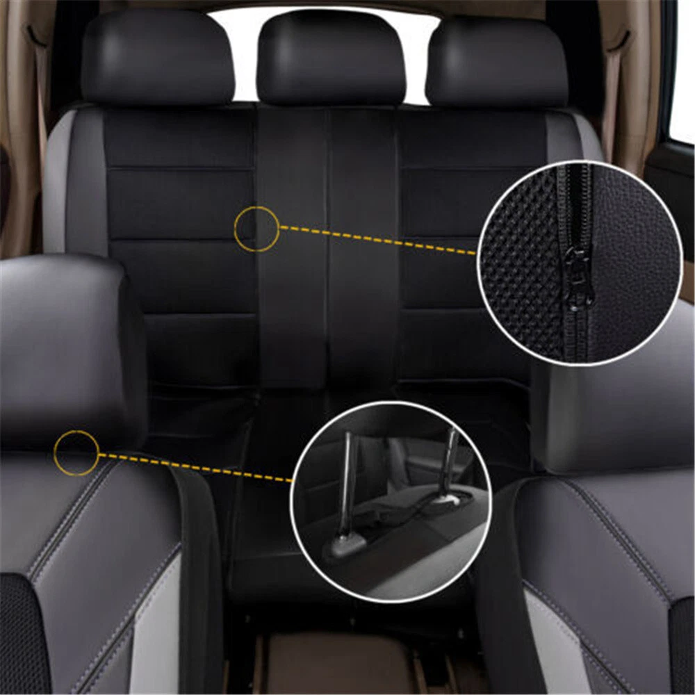 Product Description PU Leather Black/Gray Car Seat Covers Full Set Automobile Seat Cushion Protector Interior Accessories Fit Five Seat Cars Add our listing to Watchlist Or Add to Cart , you will get more discount This seat covers fits most Detachable Headrest seats . Seat covers can extend the life of your vehicle and keep your seats looking brand new and clean. These seat covers fit most of the standard vehicles including sedan, SUV, truck, van and minivan. 1, Universal application fits almost all five seats Cars 2, Helps Protect a Nice Seat or Disguise an Old One 4, Easy to install Features: 100% Brand new and high quality! Easy Installation Durable and Long Lasting Comfortable in Four Season Color: Black/Gray Material: PU Leather (The middle part is not leather ) Description: 1.The car seat cover is full set. 2.It is very easy to install the car seat cover, doesn't need to dismantle the seats, a person can complete it in 20 minutes. 3.The car seat cover doesn't affect the child safty seat, doesn't affect the seat belts,too. 4.The car seat cover is universal,it is suitable for most of cars,If you are unsure if this cover is right for your vehicle, please contact us before buying. Package Included: 5 seat head covers: 30*27cm 2 front seat covers: 118*56cm 1 backrest: 135*76cm 1 rear seat cushion: 135*56cm Accessories: one pack of hooks Payment Returns Contact Us Shipping We accept payment by PayPal only ! Payment should be completed within 5 days after buyer places the order,or else an unpaid case will be opened in order to cancel the transaction. If you can not pay in time, please contact us. e-check from PayPal will only be processed once the payment clears. All of the items will be shipped to buyer's EBAY address,please confirm your address on Ebay before you buy.Your order will be usually shipped out the same or next business days once the payment is made and cleared. 30-day Warranty with Exchange for defective, malfunctioned, incorrect or parts-missing items. Please notify us and return the item with all parts and accessories packed and marked "FOR EXCHANGE" within 14 days of receipt. If defective, malfunctioned or parts-missing items are no longer available, a refund may be issued. All returning postage costs will be the responsibility of the buyers under all circumstances. If you encounter any problems about anything, please feel free to contact us and we will do our best to assist you solve the issue. If you are not satisfied in anyway, please feel free to let us know and give us a second chance to correct it before you decide to leave any neutral or negative feedback. Please contact us through eBay link if you have any questions. We will reply you within 24- 48 hours. Please check you spam mail if no response for 48 hours. All items will be checked before packing. All items are new and of high quality. Item will be shipped within 1 business days upon receipt of payment, excluding weekends and public holidays. If to USA,we will ship your order by USPS,it will take about 8-12 working days to you,and you can track it on line. If to other country,we will ship your order by China Post or Singapore Registered Air Mail,it will take about 14-21 working days to you,you aslo can track it on line. Delivery time is about 14-28 business days and it may take up to 8 weeks . Payment We accept payment by PayPal only ! Payment should be completed within 7 days after buyer places the order,or else an unpaid case will be opened in order to cancel the transaction. If you can not pay in time, please contact us. eCHECK from PayPal will only be processed once the payment clears. All of the items will be shipped to buyer's EBAY address,please confirm your address on Ebay before you buy.Your order will be usually shipped out the same or next business days once the payment is made and cleared. Returns 30-day Warranty with Exchange for defective, malfunctioned, incorrect or parts-missing items. Please notify us and return the item with all parts and accessories packed and marked "FOR EXCHANGE" within 14 days of receipt. If defective, malfunctioned or parts-missing items are no longer available, a refund may be issued. All returning postage costs will be the responsibility of the buyers under all circumstances. Contact Us If you encounter any problems about anything, please feel free to contact us and we will do our best to assist you solve the issue. If you are not satisfied in anyway, please feel free to let us know and give us a second chance to correct it before you decide to leave any neutral or negative feedback. Please contact us through eBay link if you have any questions. We will reply you within 24- 48 hours. Please check you spam mail if no response for 48 hours. Shipping All items will be checked before packing. All items are new and of high quality. Item will be shipped within 1 business days upon receipt of payment, excluding weekends and public holidays. If to USA,we will ship your order by USPS,it will take about 7-10 working days to you,and you can track it on line. If to other country,we will ship your order by China Post or Singapore Registered Air Mail,it will take about 14-21 working days to you,you aslo can track it on line. Delivery time is about 14-28 business days and it may take up to 8 weeks . Welcome to our Store ~