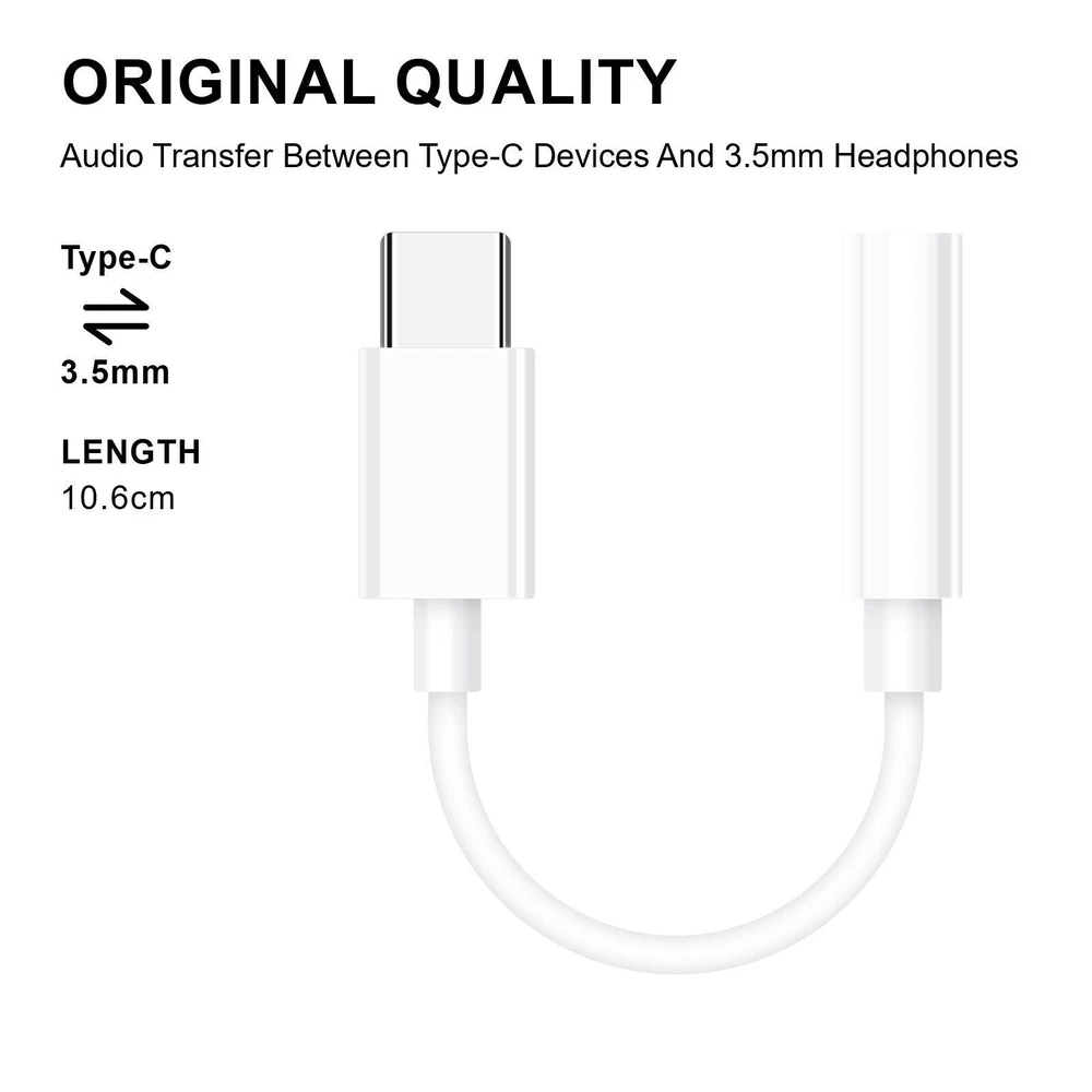 Product Description Specification: Item:Type-C to 3.5mm Headphone Adapter Cable Connectivity:USB-C , Type-C Material:TPE Color:Black/White Length:10.6cm Gross weight: 10g Function: listen to songs + line control + call + live Features: Superior Durability: Engineered with high-quality TPE material, our Type-C to 3.5mm Headphone Adapter Cable is built to last. It has successfully withstood over 15,000 rigorous bending tests, guaranteeing exceptional durability and longevity. Enhanced Flexibility: The TPE material offers not only durability but also flexibility. The cable is designed to endure more than 10,000 bends, reducing the risk of fraying or damage from everyday use. Universal Compatibility: Seamlessly connect your favorite headphones to any USB-C device. This versatile adapter supports a wide range of smartphones, tablets, and laptops, ensuring your audio needs are always met. High-Fidelity Sound: Experience uninterrupted, crystal-clear audio quality. Our adapter maintains the original sound quality of your headphones, providing an uncompromised audio experience with every use. Compact and Portable: The lightweight design makes it easy to carry wherever you go. Tuck it into your pocket, bag, or carry-on, and never be without a connection to your audio world. This Type-C to 3.5mm adapter is compatible with most Type-C phones: For iPhone 15 For iPhone 15 Pro For iPhone 15 Plus For iPhone 15 Pro Max For iPad Pro / iPad mini 6 / Macbook For Samsung Galaxy S23 / S23+ / S23 Ultra 5G For Samsung Galaxy A03s A14 A23 A54 5G For Samsung Galaxy Z Flip5 / Fold 5 For Google Pixel 8 7 6 Pro / 7a 6a 5 4 3 2 XL / Fold For Motorola Moto Edge / Razr / G Play / G Stylus 5G Other android devices with USB-C connectors and more. Products Included: Depend on your choose Tips: Not compatible with all models of Type-C phones!!! Please contact with us if you get any questions. About Us MESMART , aims to offer great items for every buyers and give every buyer the best service online. Choose supplier carefully and ensure the item quality. Do not hesitate to buy from ecosumall. You will get the best item with good price and enjoy the best service. Welcome to buy from us! Payment 1. Paypal is the payment method that we only support 2. You can check out and pay immediately after the auction ends or you complete the purchase. If you need an eBay invoice by email, please contact us before making payment. Thank you! 3. We start to process and fulfill your order once payment is received. If you add new orders after check out, please message us to confirm whether we can combine shipment for you. Or we will send the packages separately. 4. Payment are expected within 4 days after the order is confirmed. Shipping 1. We ship to the USA only. 2. How much is the shipping & handling? Our shipping and handling charges are stated clearly in the Shipping and Payments section of the item page. We always provide free shipping for most listings. 3. The combine shipping discount will be automatically calculated when you check out and pay all of your purchases together.If the Items checked out separately, please contact us to combine shipment for you but we will not offer the combine shipping discount. 4. Please make sure the correct Ship-To address is entered before checking out. Once the payment is completed, you may not be able to change the shipping address. We shall not be held responsible for any wrong or undeliverable addresses. 5. We usually ship within 1-2 business days after receiving cleared payment. 6. Our Shipping Service: We usually ship via USPS from our US warehouse, normally it will take 3-5 business days to be delivered. 7. If you have any concern about the shipping service or the item, please feel free to contact us via eBay Message, we will do our best to help you. Welcome to buy! 8. You, as the buyer, are responsible for the import duty and/or VAT for items bought from abroad. We have no idea about your local import duty or VAT or any import regulations or restrictions at the destination countries, and we shall not be held responsible for providing this information to buyers. If you have any questions in these respects, we strongly suggest that you check with your local authorities for details before purchases. MESMART, aims to offer great items for every buyers and give every buyer the best service online. Choose supplier carefully and ensure the item quality. Do not hesitate to buy from ecosumall. You will get the best item with good price and enjoy the best service. Welcome to buy from us! Terms 1. We put buyer's satisfaction at top priority. If you're not pleased with your purchases, we'll be happy to offer an exchange or refund the item total price within 30 days of your purchases. 2. For any Exchange, Refund or Return, the item must be in its original condition, including the box, packaging, and all the accessories or gifts. 3. We'll provide prepaid return shipping label if the return is a result of our fault. Postage reimbursement is offered only on standard mails, and it needs to be approved by our stuff prior to returning. 4. Please allow up to 7 business days for returns to be processed. 5. Shipping and Handling charges are not refundable. Returns 1. 30-Days Return is acceptable 2. We will pay for the return postage if the problem is our result Contact Us 1. Customer satisfaction is very important to us and our feedback rating reflects this satisfaction. If you have any question or concern, please contact us via eBay message first before leaving feedback, we will do our best to help you solve the problem. 2. We respond to all eBay messages as quickly as possible. Please allow us up to one business day before you start thinking your message is neglected or the reply is avoided, because there would be time difference, non-working hours or public holidays that have prevented us from making an instant response. Our service center located in China, working time from 8:30am. to 5:30pm. BJT (Monday to Frida