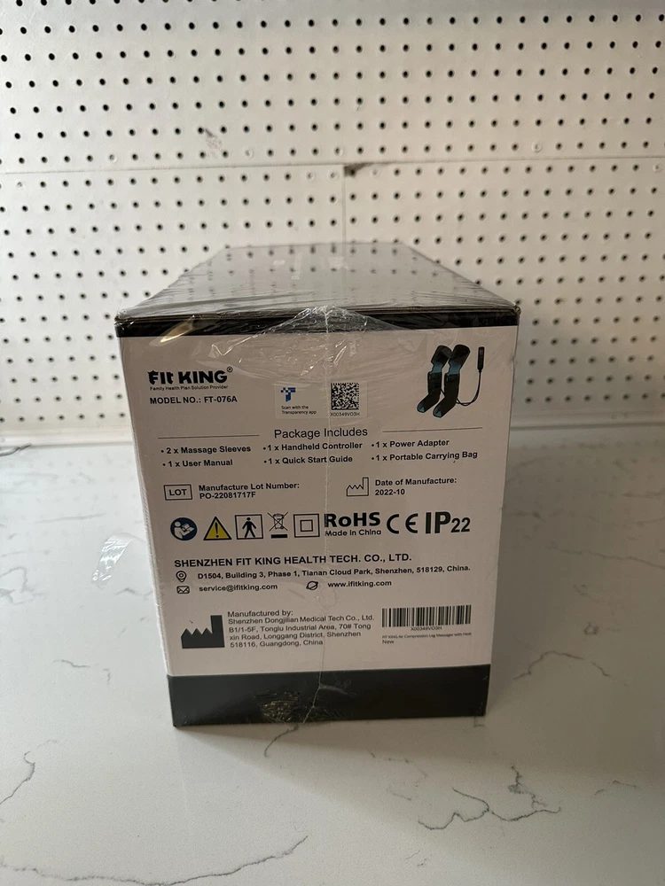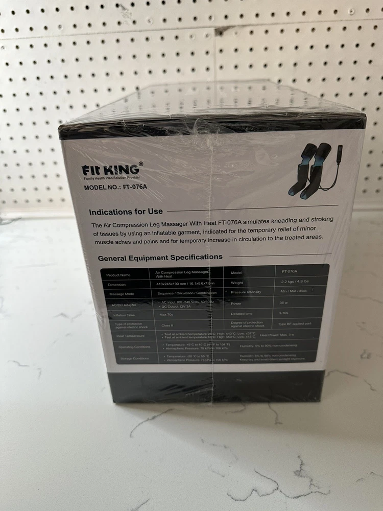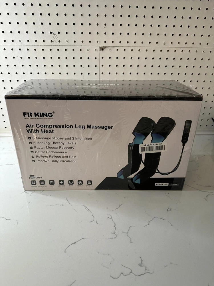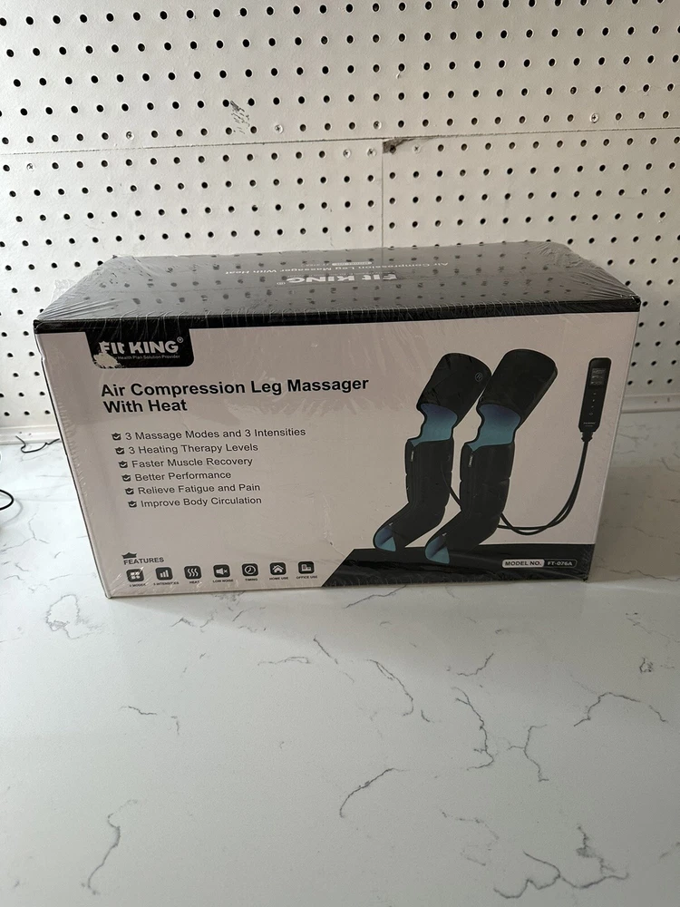 Fit King Air Compression Leg Massager With Heat Model: FT-076A New Tear in Plastic (see photos) Inspected to the best of our abilities and looks to be in good condition.
