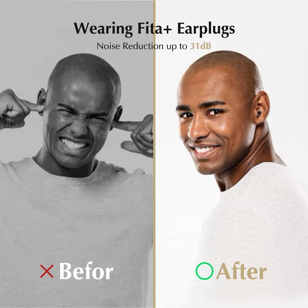 PREMIUM PROTECTION, SUPERIOR COMFORT: Experience the best of both worlds with our silicone earplugs. Unlike wax and sponge ear plugs, our silicone & ABS earplugs offer comprehensive functionality, combining comfort, durability, and effective noise reduction for an unparalleled ear protection experience. MORE NOISE REDUCTION, LESS DISRUPTION: Enjoy uninterrupted peace with our noise reduction ear plugs, featuring a remarkable noise reduction capability of up to 31dB. Whether you're in a bustling office, traveling on a noisy plane, or simply seeking tranquility at home, our earplugs ensure a quiet environment conducive to focus and relaxation. TAILORED FIT FOR ALL EARS: Say goodbye to discomfort with our ear plugs' four pairs of soft, reusable silicone ear tips in XS, S, M, and L sizes. Designed for ultimate comfort and versatility, they provide a customized fit for every ear shape and size, allowing you to wear them all day with ease. ENDLESS USAGE POSSIBILITIES: From studying in a noisy environment to attending concerts or getting a restful night's sleep, our ear plugs are your go-to solution for noise reduction in any scenario. Perfect for students, travelers, musicians, and anyone seeking tranquility amidst the chaos of daily life, our ear plugs offer versatile protection and comfort for all occasions. PLEASE NOTE:Fita + earplugs mainly block unwanted noise and reduce the heard volume, but they are not completely silent. While blocking noise, it is breathable, balances the pressure difference between the inside and outside of the ear. You can hear voice of others with the earplugs in. You can wear earplugs under the earmuffs or helmet for added protection.