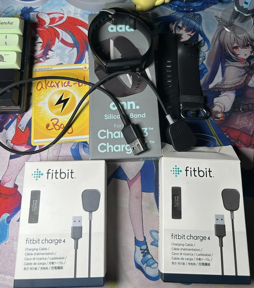 Please see the last photo for a closer view of slight scratching on the top left of the screen. Does not impede usage but the scratches are noticeable. This is a lot containing a Fitbit Charge 4, 3 Fitbit Brand Chargers, the original band, and 2 replacement Onn adjustable bands. The watch is shown with one of the replacement bands attached and will ship like this with the original band in one of the replacement boxes. The watch has been wiped and is ready for setup as a new device, hence the wrong time and date on the listing photo where it is waiting to pair to the app. Works great with a solid battery life (after a good charge as it has been unused for a while.) I simply have no need to keep it as I upgraded to an Apple Watch. Original product box is not included.