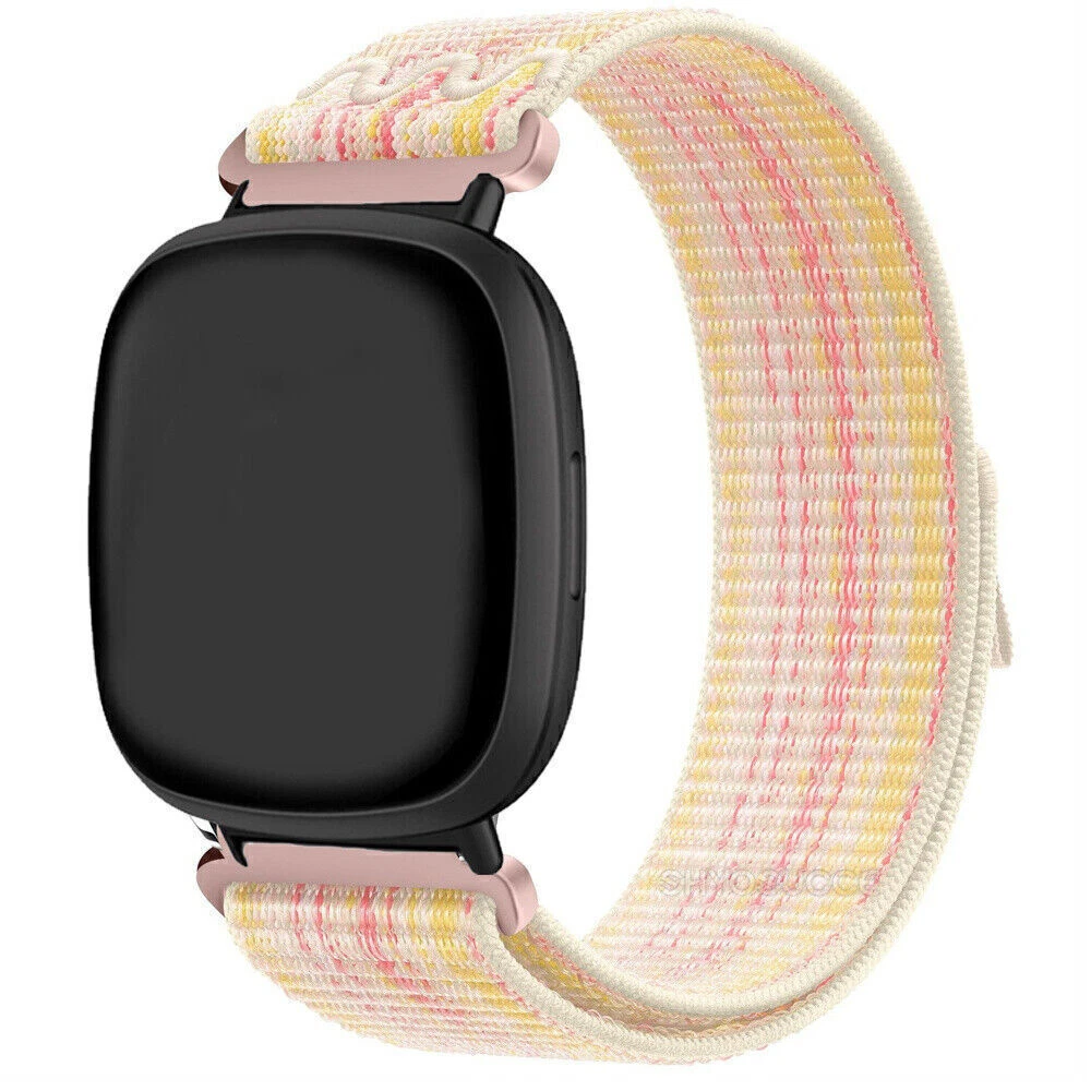 For Fitbit Versa/Versa 2/3/4 Sense 2 1 Nylon Fabric Watch Band Replacement Strap Item description: * Material: Woven Nylon * For Wrist Size: 6.29 inches-8.46 inches (160mm-215mm) Features: 1. Soft, breathable, and lightweight Sport Loop band. 2. The double-layer nylon weave has dense loops on the skin side that provide soft cushioning while allowing moisture to escape. 3. Simple and easy to install and remove, no tools needed. 4. Unique hook and loop fastener design, just stick and lock your smartwatch band easily. 5. The size can be adjusted according to the circumstance of individual wrist. Note: Dark olives are darker in the picture, actually brighter Black is a black with a little red silk, adding its reflection and beauty Package included: 1 x Nylon Sport Loop Watch Band (PS: Smartwatch in the pictures is NOT included)