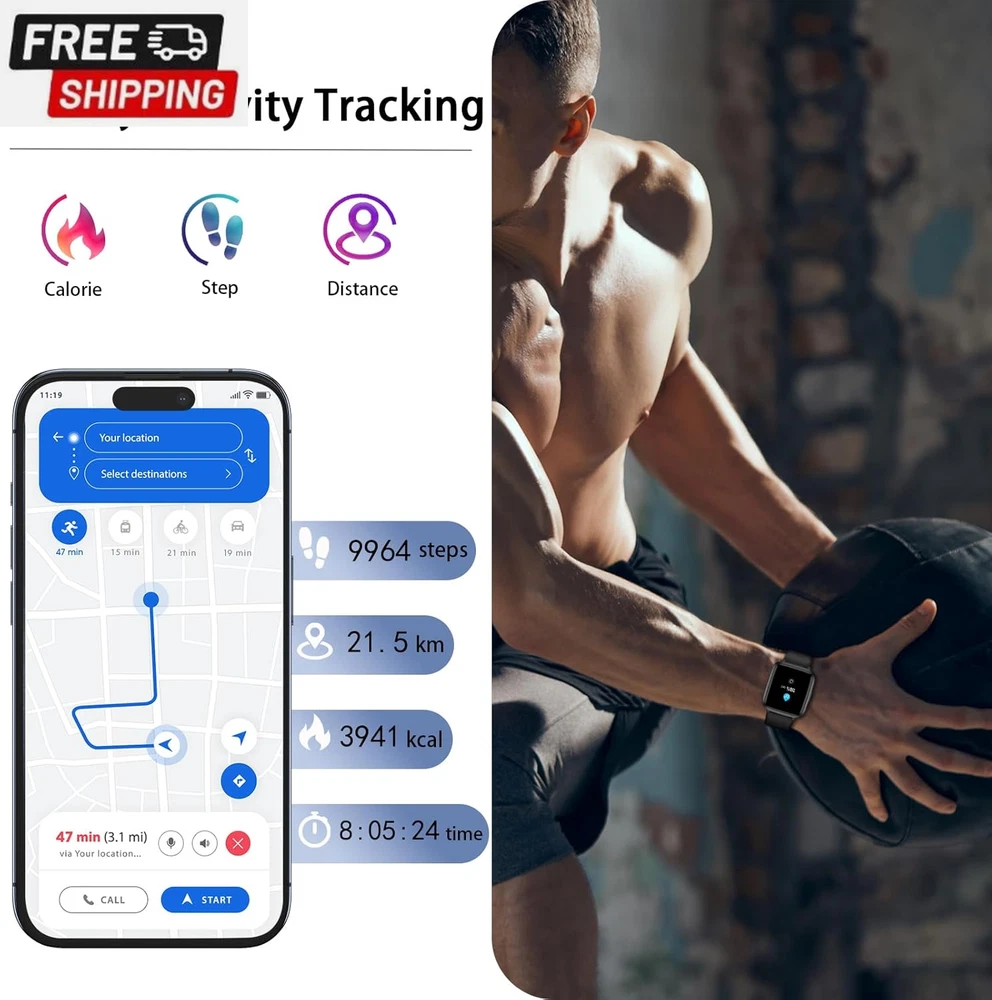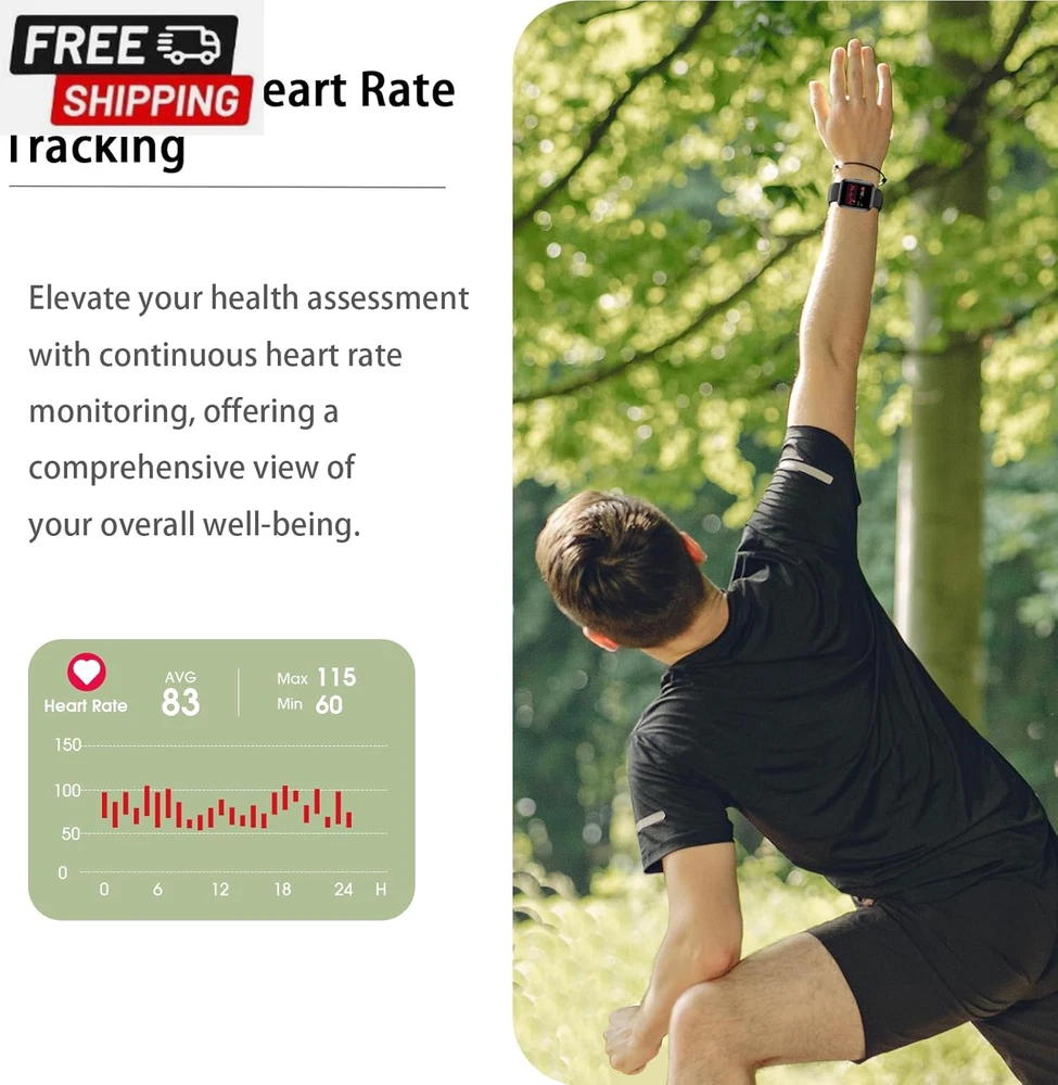 Fitness Tracker, Smart Watch for Men Women, Activity Fitness Watch with Heart Rate Monitor, Pedometer, Sleep Monitor, 50 Meters Waterproof Step Tracker Compatible with Ios & Android Phones 【Your Excellent Daily Assistant】 With its 1.3-inch TFT-LCD full-touch screen. It offering crucial features like sleep monitoring, sports recording, menstrual health tracking, relaxation guidance, alarms, timers, and more, it's your health aide. 【24/7 Heart Rate Monitoring & Sleep Tracking】 Keep track of your real-time heart rate throughout the day and effortlessly monitor your sleep patterns (Deep sleep, Light sleep, and Awake time). This feature offers valuable insights into the duration and quality of your sleep, assisting you in making lifestyle adjustments for an improved state of well-being. 【Long-lasting Battery Life & 50 Meters Waterproof】Smart Watches feature a 50 Meters waterproof rating, meet your daily needs and swimming needs. The smart integration of a large-capacity battery and low power consumption ensures extended endurance. Offering up to 7 days of regular use and an impressive standby time of 35 days, this smartwatch provides both reliability and convenience. 【Multiple movement modes】 This fitness tracker boasts Multiple sports modes. It accurately tracks and records your entire day's activities, keeping tabs on steps taken, calories burned, distance covered, active minutes, and more, meet your daily needs 【Compatible with Android & iOS】This smartwatch is compatible with iOS 8.0+ and Android 4.4+ (Designed for use with smartphones only; not intended for PC, iPad, or Tablet use). Easily link up by downloading "VeryFitPro" app, pairing it with your cellphone, and receive timely alerts for calendar events, SMS, calls, and SNS notifications (Facebook, Twitter, Whatsapp, Skype, Snapchat, etc.). Product Description 8 Sports Modes with GPS Enabled Turn on the GPS through the APP to meet your need to record the movement route Your Intelligent Assistant Heart Rate Monitor: 24h continuous heart rate monitoring Blood Oxygen Monitor: Know your exercise intensity Women's Health Tracking: track menstrual time and menstrual reminder Breath Training: Improve lung function, prevent respiratory diseases Music Control: Easily enjoy music switching during exercise Alarm Clock: Remind you of your important agenda Blood pressure: Monitor your blood pressure (not for medical data) Shipping Fast shipping is very important for us. Our standard US shipping service is FREE. Your order will be shipped within 2-3 business days upon full payment received. Your order will be delivered within 2-3 business days after the handling time. We only ship to the confirmed PayPal address. We reserve the right to cancel any order for any reason at any time. We are not responsible for undeliverable addresses. Returns and payment We offer a 30 days return policy from checkout winning date. We allow only PayPal as payment method FeedBack Your feedback very important to us, after you get your package and you are satisfied with our service please leave us positive feedback If you have any problem with your order / any questions please before leave any type of feedback For any questions, using eBay contact system Please visit our eBay store to check out other items for sale! Thank you for shopping at our store.