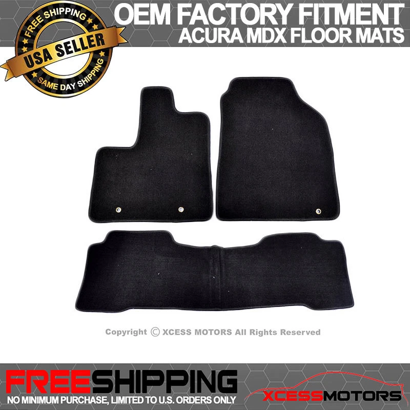 xcess Fits Fits 2001-2006 Acura MDX Style OEM Fitment Style Color Black Material Nylon Package Includes 1x Full Set of OEM Fitment Carpet(3PCS) Installation Instructions Not Included LOCATION Domestic HI/AK/PR/GU/VI/APO/FPO Canada International Shipping Carrier RATE 0 30 65 120 UPS Ground, FedEx and USPS Priority. Pilot (Truck) for Large Package If your order includes several items, they may ship separately and at different times. So that we can deliver your purchases to you as efficiently as possible, items which ship from the same location are grouped together. Our shipping confirmation emails will let you know how much of your order has shipped. Delivering Your Package We only pack and send out products from Monday to Friday (Business Day). If you are not completely satisfied for any reason, you can return an item within 30 days of receipt for a full refund of the merchandise purchase price. When you message us, please provide the corresponding RMA number so that we can help you better. Refund will be for the purchase price, in the original form of payment. Original delivery and handling charges are nonrefundable ( not applicable to free shipping ). 30 DAYS RETURN SELLER PAY SHIPPING FOR DOMESTIC BUYER. We will charge 25% restocking fees on returned items that have been installed, damaged, painted, cut and not authorized, etc. Please contact us to inquire how to waive the 25% restocking fees. (Items must be not opened in their original package. Any mark of installation, mounting, cutting, scratch or using will not be allowed.) If you have any questions both before buying or after you have purchased the item, please do not hesitate to contact our customer service support team. We will only reply email through eBay. Do not send email directly from your email account we are unable to respond to them unless picture or other special help is requested. We are Closed on Sat and Sun and major Holiday. Your questions will be replied promptly on the next business day. All emails are to be answered within 24 hours except Sat and Sun. Shipping Payment Return Contact us Shipping Free Shipping In The Continental USA LOCATION Domestic HI/AK/PR/GU/VI/APO/FPO Canada International Shipping Carrier RATE Domestic UPS Ground, FedEx and USPS Priority. Pilot (Truck) for Large Package If your order includes several items, they may ship separately and at different times. So that we can deliver your purchases to you as efficiently as possible, items which ship from the same location are grouped together. Our shipping confirmation emails will let you know how much of your order has shipped. Delivering Your Package We only pack and send out products from Monday to Friday (Business Day). Pay ment Secure Payments Return If you are not completely satisfied for any reason, you can return an item within 30 days of receipt for a full refund of the merchandise purchase price. When you message us, please provide the corresponding RMA number so that we can help you better. Refund will be for the purchase price, in the original form of payment. Original delivery and handling charges are nonrefundable ( not applicable to free shipping ). 30 DAYS RETURN SELLER PAY SHIPPING FOR DOMESTIC BUYER. We will charge 25% restocking fees on returned items that have been installed, damaged, painted, cut and not authorized, etc. Please contact us to inquire how to waive the 25% restocking fees. (Items must be not opened in their original package. Any mark of installation, mounting, cutting, scratch or using will not be allowed.) Contact Us Business Hours: Monday to Friday 9:30am-5:30pm PST If you have any questions both before buying or after you have purchased the item, please do not hesitate to contact our customer service support team. We will only reply email through eBay. Do not send email directly from your email account we are unable to respond to them unless picture or other special help is requested. We are Closed on Sat and Sun and major Holiday. Your questions will be replied promptly on the next business day. All emails are to be answered within 24 hours except Sat and Sun. Xcessmotors was established in 2004 and had always been committed to providing customers with high-quality auto parts. We offer various bumpers, spoilers, grilles, floor mats, window visors, side skirts, diffusers and more for most brands of vehicles. In additional, our products are shipped from US warehouses to ensure you receive your items as quickly as possible. We sincerely hope that you will have a pleasant shopping experience in Xcessmotors.