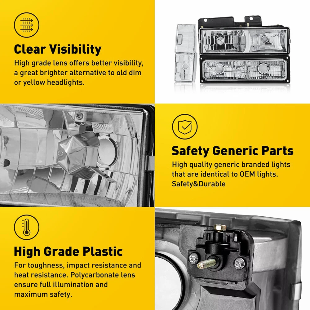 Fit for: 1988-1993 Chevy C/K 1500 2500 3500 1992-1993 Chevy C/K 1500 2500 Suburban 1992-1993 Chevy Blazer Full Size Specifications: OE number: GM2503101 GM2502101 15034930 15034929 Material: ABS+PC (ABS Plastic Housing/Polycarbonate lens) Appearance color: 1.Housing Color: Chrome 2.Lens Color:Clear 3.Reflector Color:White Note: Projector ×(Not Include) DRL × (Not include) Bulb × (Not include) Features: *Easy to install: Fits 1992-1993 Chevy Blazer Full Size Headlights HeadLamps Assembly Pair LH RH Fit for: 1988-1993 Chevy C/K 1500 2500 3500 1992-1993 Chevy C/K 1500 2500 Suburban 1992-1993 Chevy Blazer Full Size Specifications: OE number: GM2503101 GM2502101 15034930 15034929 Material: ABS+PC (ABS Plastic Housing/Polycarbonate lens) Appearance color: 1.Housing Color: Chrome 2.Lens Color:Clear 3.Reflector Color:White Note: Projector ×(Not Include) DRL × (Not include) Bulb × (Not include) Features: *Easy to install: Direct replacement, drilling and cutting are not required. *Superior quality: Made of ABS and PC materials with toughness and heat resistance functions to ensure its long service life and durability. *Angle adjustment: Equipped with a headlamp Angle adjustment knob, you can adjust the best Angle of view through the knob. *Suggestion: 1.Please confirm the OE number before purchasing!!! 2.Professional installation is required!!! Packaging include: Headlights*2(Left+Right) Item Specifics Brand AUXITO Lighting Technology Halogen Type Headlight Assembly Features Reflector Housing, SAE-Certified, Sealed Assembly Housing Color Chrome Placement on Vehicle Front Left,Right Light Color No Bulb Lens Color Clear Reflector Color White Manufacturer Part Number CVC1088.00 10 V1.40 V1.90 Color Temperature \ Voltage 12 V Mounting Style Screws Vintage Part Yes Performance Part Yes Manufacturer Warranty 5 Years Universal Fitment No Number of Bulbs 0 Finish Smooth Model For 1988-1993 Chevy C/K 1500 2500 3500 OE/OEM Part Number GM2503101 GM2502101 15034930 15034929 Quantity 2 Headlight assembly Packaging include Left & Right Side Headlights Assembly Bulbs Included Not Included Bulb Shape Code Please Use Stock Bulbs Include Projector Not Included Include DRL Not Included Fitment Type Direct Replacement Assembly Type Composite Type Headlight Assembly Mounting Hardware Included No Certifications DOT, SAE Dust and Moisture Protection Yes Waterproof Yes Ballast Included No Applicable Regions US Items Included Headlight Assembly Bulb Shape Code Just like the original Wattage \ FAQ ♥ If you have a decoding problem or any other problems, please contact us first, we will help you with it. We will reply you within 24 hours in working days. I'm a new seller, thanks a lot for your trust and convince! I will serve you with all my heart. ♥ Q1: Will this bulb fit my vehicle? A: We can match almost any vehicle to one of our bulb sizes. eBay only lets us include some vehicle fitments per listing, but if your vehicle does not show up on the compatibility table at the top of our listings, welcome you to contact us for free consulation before purchasing a product. Q2: My item has not arrived, what's taking so long? A: Sometimes items take longer than expected, especially if it’s going far or to rural area. Check with your post office to see if your item has been held up. Sometimes Royal Mail will not update a tracking number until it has arrived at its destination. If your item still don't arrive after a few days, let us know so we can double check for you and help solve it asap. Q3: My bulbs won't fit, help! A: Special bulb holder may be required. See if you can take the holder from the stock bulb. If not, let us know. The bulb size may be wrong, double check the item you received with the item you ordered. Do you have an aftermarket lighting housing? These may not be perfectly fitted for aftermarket bulbs and will require some manual modifications. Q4: Neither side lighting up? Both sides flicker, hyper flash, or work inconsistantly. A:Check the light fuses, and then check the ballast plugs to insure correct installation. If this doesn't work, there may be a voltage problem with the vehicle. You probably just need a relay or capacitor. Even though some bulbs are builtin resistors, they may still need a decoder. Payment (1). We gladly accepts payment via PayPal, We will ship your item(s) within 24 hours. (2). Before payment, please keep the consistency of Paypal address and ebay address. (3). Quantity orders are welcome! Returns (1). We offer 60 days free return policy. Please contact us within 60 days from the date you receive your order if you have any issues with the product or want return. Refund will be send after we got your resend package. (2). All returned items should be in the original packaging , return tracking information should be provided . Contact us (1).Negative feedback will not help resolve any problems you have, please contact us via eBay messages before leaving negative feedback , our customer service will make best effort to help you with the issues. (2).We maintain high standards of excellenceand strive for 100% customer satisfaction! Feedback is very important to us. We request that you contact us immediately before you give us neutral or negative feedback, so that we can satisfactorily address your concerns. About us We're professional in car and motorcycle accessories, especially in LED bulbs. We have our own factory and R&D team. Our belief is to sell top quality items that fit your car and serve you with our heart. Anything please feel free to contact us! Our customer service is very responsibility. Come and follow us! DESCRIPTION PAYMENT SHIPPING RETURN POLICY CONTACT US Shop Category Store Home Other Hot Item 2PCS O2 Oxygen Sensor Up+Downstream For 08-14 Chevrolet Equinox/GMC Terrain 2.4L USD 29.99 2x H7 Super Bright LED Headlight Bulbs 60000LM Kit High Low Beam 6500K White USD 24.99 AUXITO 7440 7443 7444 LED Backup Reverse Back Up Light Bulbs Super Bright White USD 12.59 AUXI
