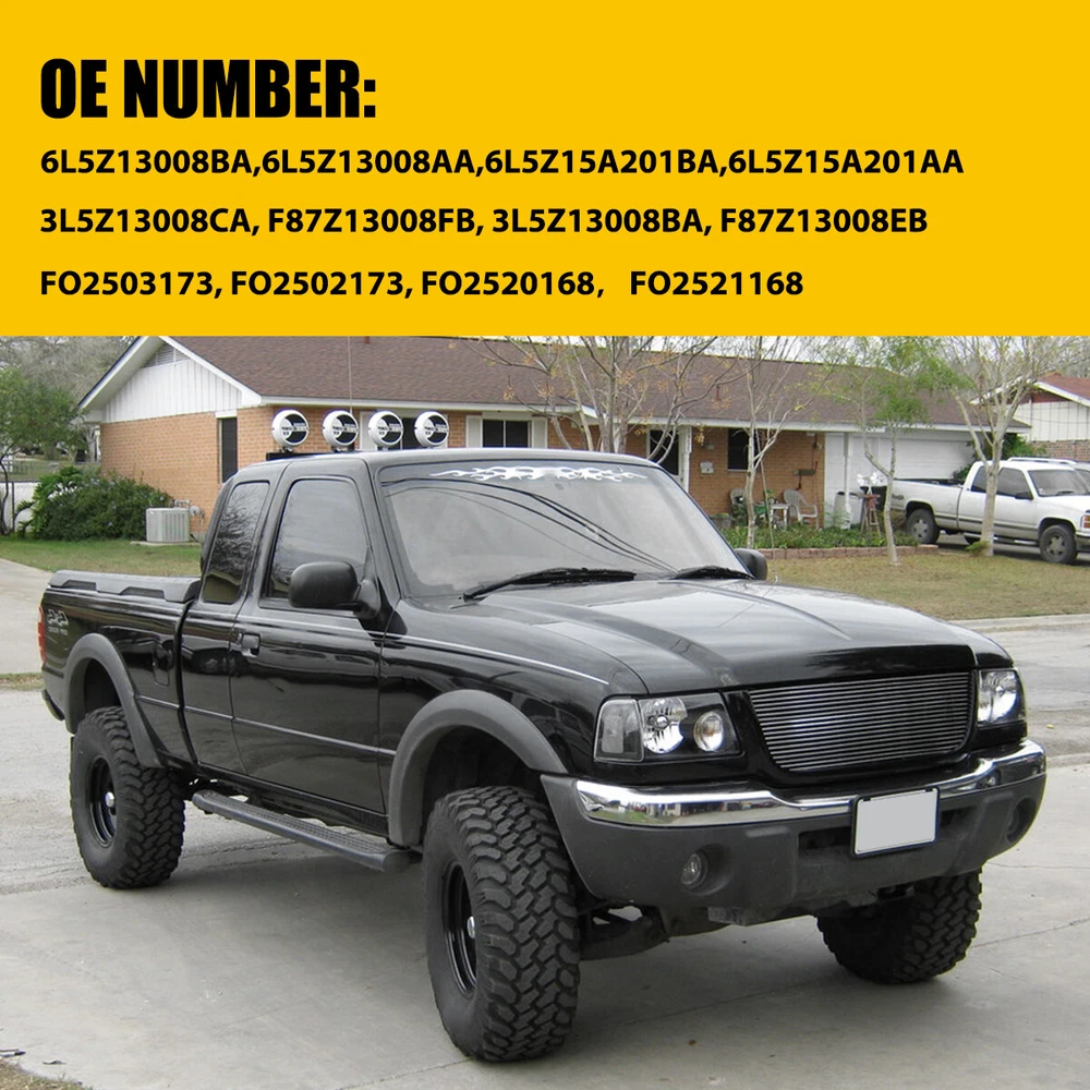 Fit for: 2001-2011 Ford Ranger Specifications: OE number: 6L5Z13008BA,6L5Z13008AA,6L5Z15A201BA,6L5Z15A201AA 3L5Z13008CA, F87Z13008FB, 3L5Z13008BA, F87Z13008EB FO2503173, FO2502173, FO2520168,FO2521168 Material: ABS+PC (ABS Plastic Housing/Polycarbonate lens) Appearance color: 1.Housing Color:Black 2.Lens Color:Clear 3.Reflector Color:White Note: Projector ×(Not Include) DRL × (Not include) Bulb × (Not include) Features: *Easy to install: Direct replacement, drilling and cutting are not required. Fits 2001-2011 Ford Ranger Black Housing Headlights White Corner Signal Lamps Fit for: 2001-2011 Ford Ranger Specifications: OE number: 6L5Z13008BA,6L5Z13008AA,6L5Z15A201BA,6L5Z15A201AA 3L5Z13008CA, F87Z13008FB, 3L5Z13008BA, F87Z13008EB FO2503173, FO2502173, FO2520168,FO2521168 Material: ABS+PC (ABS Plastic Housing/Polycarbonate lens) Appearance color: 1.Housing Color:Black 2.Lens Color:Clear 3.Reflector Color:White Note: Projector ×(Not Include) DRL × (Not include) Bulb × (Not include) Features: *Easy to install: Direct replacement, drilling and cutting are not required. *Superior quality: Made of ABS and PC materials with toughness and heat resistance functions to ensure its long service life and durability. *Angle adjustment: Equipped with a headlamp Angle adjustment knob, you can adjust the best Angle of view through the knob. *Suggestion: 1.Please confirm the OE number before purchasing!!! 2.Professional installation is required!!! Packaging include: Headlights*2(Left+Right) Item Specifics Mounting Style Screws Bulbs Included No. Reuse Existing Bulbs Fitment Type Direct Replacement Items Included Driver & Passenger Side Headlgihts Manufacturer Part Number FO2503173, FO2502173, FO2520168,FO2521168 Material ABS Plastic / Polycarbonate Lens Superseded Part Number 6L5Z13008BA,6L5Z13008AA,6L5Z15A201BA,6L5Z15A201AA Placement on Vehicle Front, Left, Right California Prop 65 Warning This product contains chemicals known to the State. Brand AUXITO Bulb Shape Code 9007 High / Low Beam Type Headlight Assembly Interchange Part Number AM94811292 6L5Z13008AA FO2503173 FO2502173 2001 2002 2003 2004 Parking Light 3157A OE/OEM Part Number FO2521168 FO2531171 3L5Z13008BA 3L5Z13008CA 2005 2006 2007 2008 Housing Color Black Style OE Features Reflector Housing Lens Color Clear Lens / Clear Reflector Turn Signal 3157A Lighting Technology Halogen Number of Bulbs 0 Light Color Cold White Reflector Color White Attention 1 Compatible on Models w/ Factory Halogen Headlight Only Attention 2 Not Compatible on Models w/ Factory HID/Xenon Headlights Manufacturer Warranty 1 Year Payment Returns DESCRIPTION PAYMENT SHIPPING RETURN POLICY CONTACT US Shop Category Store Home LED Headlight ◈ H4 ◈ H13 LED Reverse Light ◈ T15/921/W16W LED License Plate Light LED Side Marker Light Car Parts & Accessories Tail Light assemblies Other Hot Item Picture New List Item For 2005-2007 Ford Focus Replacement Black Clear Headlights Lamps Pair LH & RH USD 80.99 Black Driver Side Suburban Fits 2015-2020 Chevy Tahoe Projector Headlight Lamps USD 139.99 68079363AA Mirror Glass Power Heated LH Driver Side Dodge for Ram 1500 2500 USD 20.99 Fits 2004 05 06-2008 Acura TSX Head Headlights Projector Lamp Black Replacement USD 141.99 2pcs Door Handle Front Left Right Side For Toyota 1998-2003 Sienna Plastic Beige USD 22.99 Help & Info Payment Policy Shipping Policy Return Policy FAQ About Us Fits 2001-2011 Ford Ranger Black Housing Headlights White Corner Signal Lamps Fit for: 2001-2011 Ford Ranger Specifications: OE number: 6L5Z13008BA,6L5Z13008AA,6L5Z15A201BA,6L5Z15A201AA 3L5Z13008CA, F87Z13008FB, 3L5Z13008BA, F87Z13008EB FO2503173, FO2502173, FO2520168,FO2521168 Material: ABS+PC (ABS Plastic Housing/Polycarbonate lens) Appearance color: 1.Housing Color:Black 2.Lens Color:Clear 3.Reflector Color:White Note: Projector ×(Not Include) DRL × (Not include) Bulb × (Not include) Features: *Easy to install: Direct replacement, drilling and cutting are not required. *Superior quality: Made of ABS and PC materials with toughness and heat resistance functions to ensure its long service life and durability. *Angle adjustment: Equipped with a headlamp Angle adjustment knob, you can adjust the best Angle of view through the knob. *Suggestion: 1.Please confirm the OE number before purchasing!!! 2.Professional installation is required!!! Packaging include: Headlights*2(Left+Right) Payment Returns All rights reserved. On Dec 25, 2024 at 20:03:46 PST, seller added the following information: