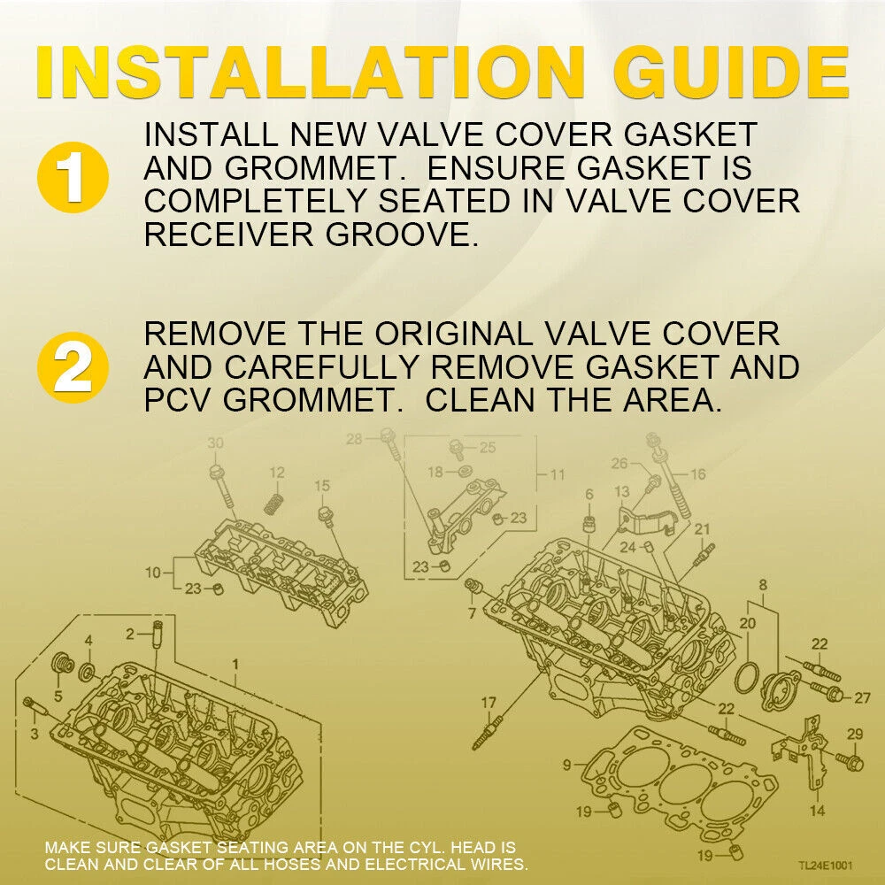 NEW VALVE COVER GASKET SET for 2008-2015 Honda Acura MDX TL Accord Odyssey 3.5L 3.7L Description: Manufacturer Part Number: VS50773R, 12030RJA000 Type: Valve Cover Gasket Remark: There are two different designs on the valve cover gaskets for HONDA ODYSSEY 3.5L. The valve cover gasket in this kit only fit HONDA ODYSSEY 3.5L J35A7. It does not fit HONDA ODYSSEY 3.5L J35A6 Features: 921modigt Best choice of motor parts Fits 2008-2016 For Honda Odyssey Engine Valve Cover Gasket Set 3.5L VS50773R NEW VALVE COVER GASKET SET for 2008-2015 Honda Acura MDX TL Accord Odyssey 3.5L 3.7L Description: Manufacturer Part Number: VS50773R, 12030RJA000 Type: Valve Cover Gasket Remark: There are two different designs on the valve cover gaskets for HONDA ODYSSEY 3.5L. The valve cover gasket in this kit only fit HONDA ODYSSEY 3.5L J35A7. It does not fit HONDA ODYSSEY 3.5L J35A6 Features: The valve cover gaskets are constructed of premium materials and use advanced process manufacturing technology and precise alignment technology, allowing the gasket to be firmly attached to the cover and accurately mounted to the port. Meets or exceeds all original equipment specifications. This Valve Cover Gasket is just what you need to keep your car in good running order. The Valve Cover Gasket you will receive in this kit are high quality gaskets that the dealers and rebuilding shops use everyday. So do not settle for lesser quality parts when it comes to engine repair. This Gasket is designed for the professional installer. It does not come with any installation instructions. If you do not have a service manual please consult a professional mechanic prior to installing this kit. Specialized designs yield significant and noticeable improvements to your car engine. Package Included: (As Pictured) 2 Valve Cover Gaskets 6 Spark Plug Tube Seals 10 Grommets Fitment: YEAR MAKE MODEL ENGINE 2010-2013 ACURA MDX 3.5L V6 3471CC SOHC (24 VALVE) 2013-2015 ACURA RDX 3.5L V6 3471CC SOHC (24 VALVE) 2009-2012 ACURA RL 3.5L V6 3471CC SOHC (24 VALVE) 2009-2014 ACURA TL 3.5L V6 3471CC SOHC (24 VALVE) 2009-2014 ACURA TL 3.7L V6 3664CC SOHC (24 VALVE) 2010-2013 ACURA TSX 3.5L V6 3471CC SOHC (24 VALVE) 2009-2014 ACURA ZDX 3.7L V6 3664CC SOHC (24 VALVE) 2014-2017 HONDA ACCORD 3.5L V6 3471CC 212CID SOHC (24 VALVE), ENG. CODE "J35Y1" 2013 HONDA ACCORD 3.5L V6 3471CC 212CID (24 VALVE) 2008-2012 HONDA ACCORD 3.5L V6 3471CC SOHC (24 VALVE) 2010-2011 HONDA ACCORD CROSSTOUR 3.5L V6 3471CC SOHC (24 VALVE) 2015 HONDA CROSSTOUR 3.5L V6 3471CC 212CID SOHC (24 VALVE), ENG. CODE "J35Y1" 2014 HONDA CROSSTOUR 3.5L V6 3471CC SOHC (24 VALVE), ENG. CODE "J35Y1" 2012-2013 HONDA CROSSTOUR 3.5L V6 3471CC SOHC (24 VALVE) 2011-2017 HONDA ODYSSEY 3.5L V6 3471CC SOHC (24 VALVE) 2008-2010 HONDA ODYSSEY 3.5L V6 3471CC SOHC (24 VALVE), ENG. CODE "J35A7" 2009-2015 HONDA PILOT 3.5L V6 3471CC SOHC (24 VALVE) 2009-2014 HONDA RIDGELINE 3.5L V6 3471CC SOHC (24 VALVE) Note: If you have any problems, please contact us first. Thanks! Item Specifics Brand MODIGT Type Valve Cover Gasket Material Rubber Color Blue Manufacturer Part Number VS50773R OE/OEM Part Number VS50773R Interchange Part Number VS50773R, 12030RJA000, DG-0664410653 Manufacturer Warranty 2 Years Features Easy to Installation, Direct Fit Fitment Type Direct Replacement Placement on Vehicle Front Package Content 1* Valve Cover Gasket Set Superseded Part Number 0361849,0361848,0361775,0361776, 12030RJA000 Fitment For Honda Acura MDX TL Accord Odyssey Other Part Number(1) 11-03-0403,E12512CP955S,12030RJA000,90442P8AA00 Other Part Number(2) Only fit HONDA ODYSSEY 3.5L J35A7 Engine 3.5L 3.7L V6 24v Other Part Number(3) DOES NOT fit HONDA ODYSSEY 3.5L J35A6 Year 2008 2009 2010 2011 2012 2013 2014 2015 Items Included Valve Cover Gaskets set Payment 1. It will be much appreciated that you finish your payment asap or it will make UPI (unpaid item case) on your account leading to be suspended or restricted by eBay when those UPI cases carry over to certain amount. 2. Any problems please contact us for more details. Shipping 1. All items will be shipped to buyer's ebay address. 2. All items will be shipped within 24-48 working hours upon receipt of payment, and multiple items will be combined shipping. 3. In most cases, delivery takes around 3-5 business days, it's highly depended on the efficiency of the shpping carrier. If your item doesn't arrive on time, please contact us immediately for further assistance. Please note there is no local pickup service available. Returns If you are not 100% satisfied with your purchase, you can return the product and get a full refund or exchange the product for another one. Please Note: Please write us a message before your return, otherwise we will not accept the package. Any product you return must be in the same condition you received it and in the original packaging. Contact Us 1. We care about our valued buyers, if you have any questions, our Customer Service staff will be very glad to help you. We try our best to reply you as soon as possible, please kindly allow 24 hours for us to response. 2. Our goal is to make sure you are a happy buyer and pleasant shopping with us. Please contact us before leaving any 1 or 2 star ratings, negative feedback or open any dispute. We understand the concerns and frustrations you might have, and will do our endeavor to resolve the issues. 921modigt Best choice of motor parts Fits 2008-2016 For Honda Odyssey Engine Valve Cover Gasket Set 3.5L VS50773R NEW VALVE COVER GASKET SET for 2008-2015 Honda Acura MDX TL Accord Odyssey 3.5L 3.7L Description: Manufacturer Part Number: VS50773R, 12030RJA000 Type: Valve Cover Gasket Remark: There are two different designs on the valve cover gaskets for HONDA ODYSSEY 3.5L. The valve cover gasket in this kit only fit HONDA ODYSSEY 3.5L J35A7. It does not fit HONDA ODYSSEY 3.5L J35A6 Features: The valve cover gaskets are constructed of premium materials and use advanced process manufacturing technology and precise al