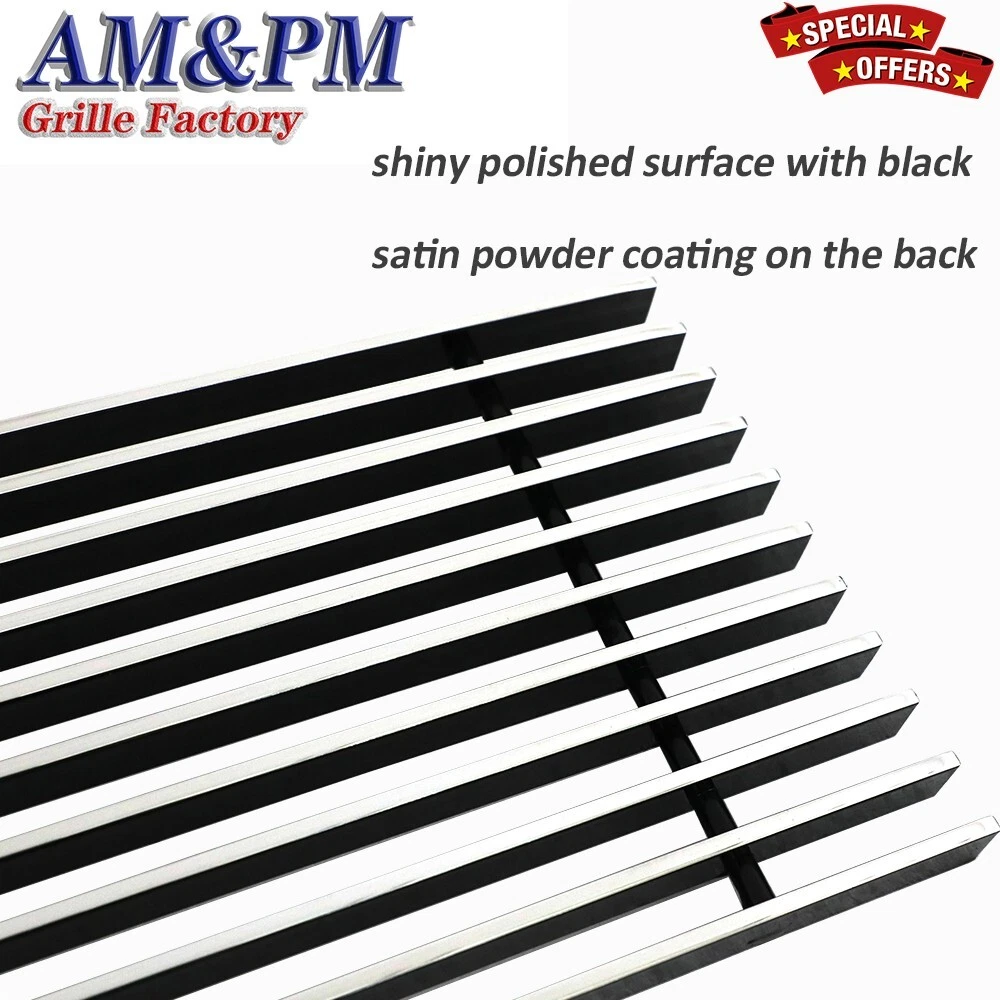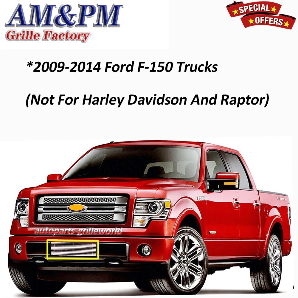 Fits 2009-2014 Ford F150 Pickup Trucks Bumper Billet Grille Grill Insert Chrome Fitment *2009-2014 Ford F-150 Trucks (Not For Harley Davidson And Raptor) Material Aluminum Color Chrome Style Horizontal Billet Position Lower Bumper Pieces 1 pc Installation Bolt Over/Overlay/Bolton (Drilling Not Required) Special note Grille insert only, logo or emblem, frame or shell is NOT included. l Each grille guarantees a shiny polished surface with black satin powder coating on the back. l Air craft grade 6061-T6 aluminum solid billet grille inserts can protect the front end of your vehicle. l Bar width: 3.5mm ~ 4.0mm (1/8in ~ 5/32in) l Can enhance the style or function of the original stock grille. l Corrosion resistant aluminum billet grilles in polished mirror finish chrome color. l Hardware and instruction are included. l Most of our orders ship within 24 hours in business day l Please ensure your shipping address is correct before submit payment. We only ship to your shipping address after your payment. If the shipment got returned due to wrong address or refused by buyer, there will be 20 % restock fee. Destination Carrier& Service Estimated Transit Time (Business Day) US 48 Continental States UPS 1~5 Days APO, FPO,Alaska,Hawaii, Puerto Rico ,Guam, U.S. Virgin Islands And All Other U.S. Territories Not Available Not Available International Not Available Not Available l We accept Paypal and Visa, MasterCard, Amex, Discover from PayPal. l You do not need a paypal account to make a payment. You can go to checkout, and choose "Paypal", then choose "No paypal account", you will be able to pay by credit card directly. l We accept return or exchange within 30 days after package delivered. l Products must be in the condition you received them and in the original box and/or packaging. l No refund will be made on damaged or missing products. l If we sent the wrong or defective item, we will cover all the cost for return/exchange. l If buyer placed the wrong order, we accept return with 20 % restocking fee applied, also you need pay for the return shipping cost. When will you ship my order? -- We ship within 24 hours of business day normally. How long will the shipping time be? -- Normally it takes 1 -5 working days for delivery in US by UPS. Will you email me the tracking number once you shipped? -- Yes, we will email you the tracking number once we shipped. The tracking number will also be added to your ebay so you can track it on your ebay order. Can I cancel my order after I made my payment? -- Sorry, once the payment is received, it can not be cancelled. Can I change my shipping address after I made the payment? -- Sorry, we can not change shipping address by ebay policy, we only ship to the shipping address on the payment. Please ensure your shipping address is correct before submit payment. When will I get my refund once I returned my item? -- We will issue your refund within 24 hours after you returned your item. Please let us know the return tracking number once you returned . l Thanks for placing an order in Autoparts-Grilleworld. l Please send us eBay message, if you have any of these questions: - If product doesn't fits your vehicle - How to place an order - Receive the wrong item - Item damaged or missing - Return and exchange - Want to be our wholesale customer