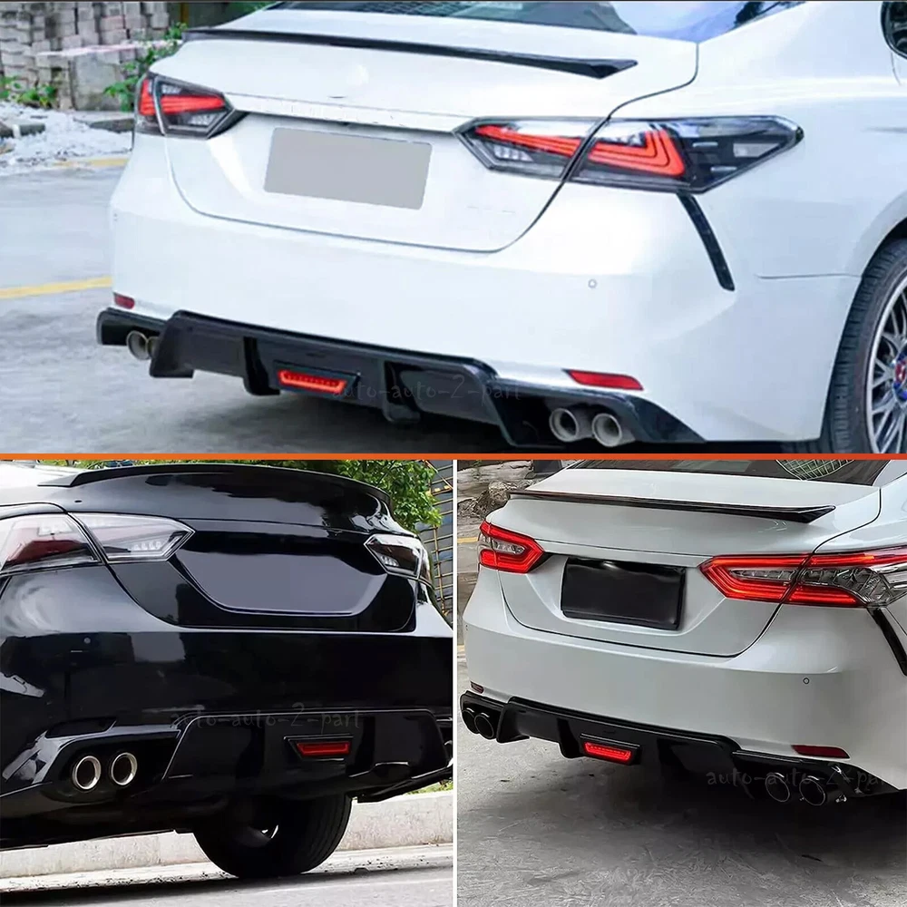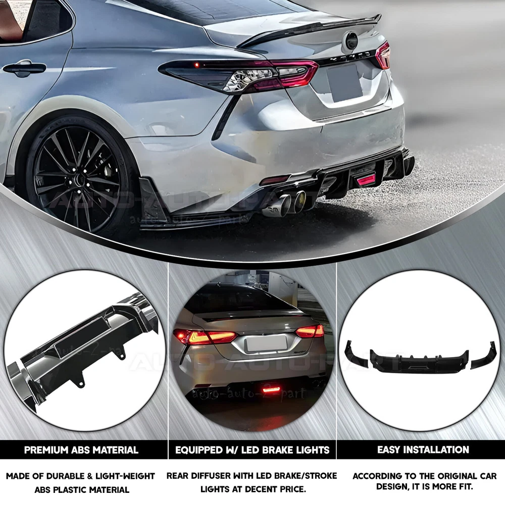 Fits 2018-2024 TOYOTA CAMRY SE XSE GLOSSY BLACK REAR BUMPER DIFFUSER W LED LIGHT