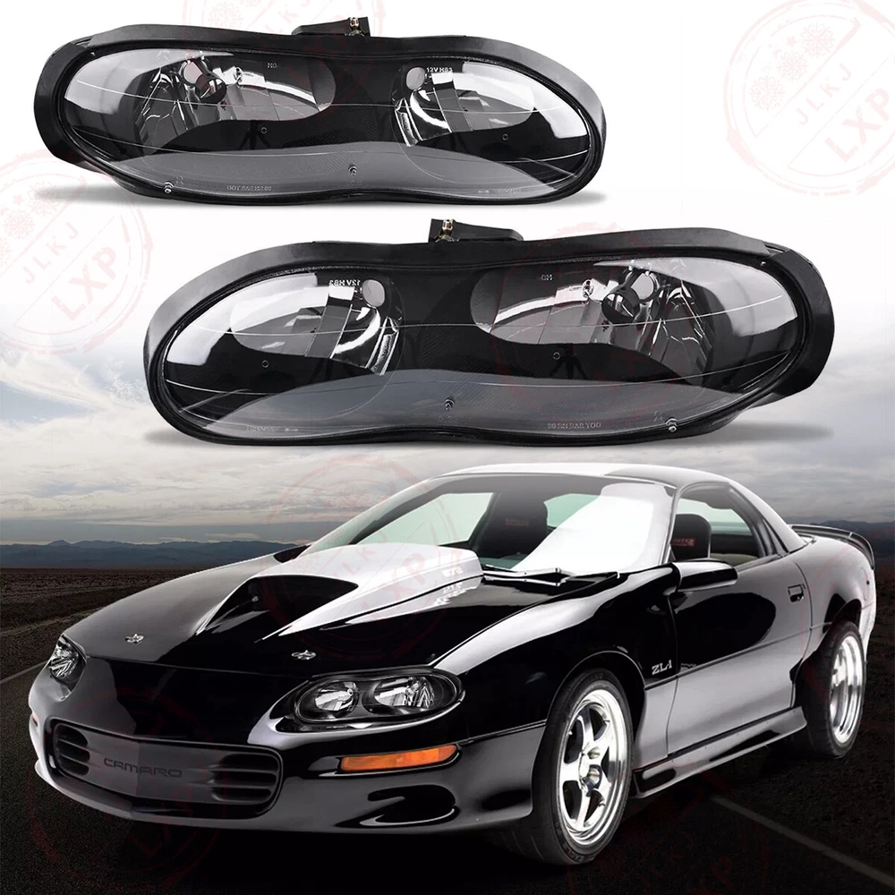 Fits Chevy Camaro Z28 SS 98-02 Black Housing Headlights Assembly Pair Headlamp