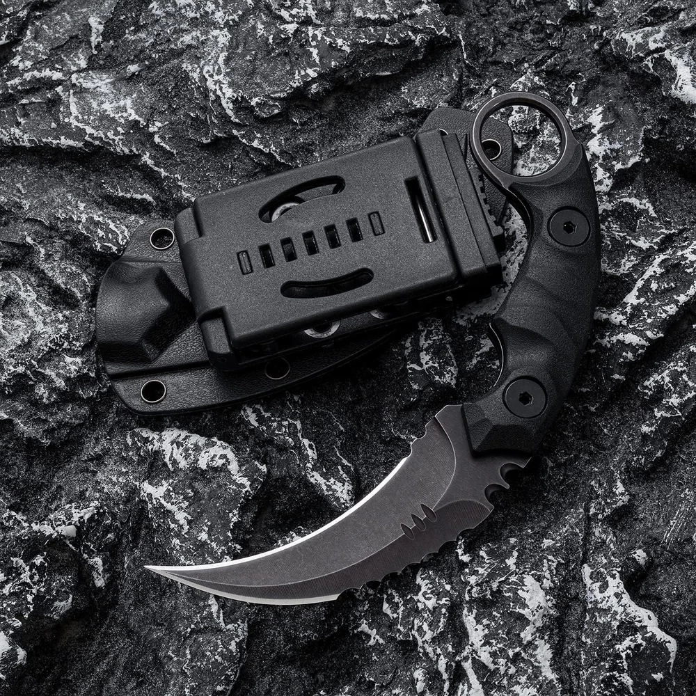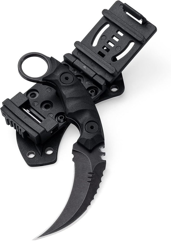 【D2 STEEL STRENGTH AND DURABILITY】 D2 Steel is tried-and-true performance steel. This blade has been tested in various categories: toughness, strength (lateral stress), and edge honing and holding ability. The mesmerizing knife has been masterfully crafted; we Harden ours between 59-61 HRC to achieve peak performance on a tool that is made to last a lifetime. 【EXQUISITE G10 HANDLE】The ergonomic Solid G10 handle provide a durable, sure grip and increase concealability and multi-environment functionality. G10 is temperature resistant, has good abrasion resistance, is anti-slip, moisture-proof, does not expand or contract due to normal temperature and moisture exposure, and is exceptionally rugged. 【PRODUCT PARAMETER】overall length: 7.08", blade length: 2.75", blade thickness: 0.17", handle Length: 4.33", handle thickness: 1.00", hardness: 59-61 HCR, weight: 4.83 oz 【MULTIPLE CARRYING METHODS】This knife has a ring on the handle for easy forward and reverses grip. The high-strength lightweight Kydex material sheath with a universal clip to be horizontal or vertical. You can also use the removable & adjustable spacers on the clip to fit it to any belt size for easy portability. 【AN EXCELLENT GIFTING IDEAL】If you want a unique gift for your loved one who likes outdoor or indoor activity, then our Tactical knife is a perfect choice! To a special friend, gifts For Men, gifts for women! Make this fantastic gift to any seasoned or amateur collector; it will bring a smile to their faces, and they will surely love it. SPECIFICATIONS: Overall Length: 7.08" in (18 cm) Blade Length: 2.75" in (7 cm) Blade Thickness: 0.17" in (0.45 cm) Blade Material: D2 Blade Finish: Stonewashed / Satin Edge Type: Double Edged Handle Length: 4.33" in (11 cm) Handle Material: G10 Handle Color: black / green Handle Thickness: 1.00" in (2.6 cm) Weight: 4.83 oz (137 g) Overall weight: 10.54 oz (299 g) WHAT'S INCLUDED: Knife *1 Kydex Sheath *1 Packing box *1