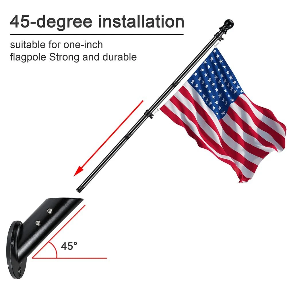 Flag Pole Holder Specification Material: 304 Stainless Steel Color: Black weight: 0.57lb / 259.5g Installation Accessories Specification Screws: Length 1.57in / 40mm Expansion screws: Length 1.69in / 43mm Installation Method ✔ If you're mounting to stone/concrete/masonry, first mark the installation position of 3 holes. And then drill a hole slightly longer than 43mm with 10mm (3/8”) diameter brill. Insert the expansion screw fully into the hole in the wall. Then align the three holes of the bracket with the installation position, and finally tighten the screw to fix the base with the cross screwdriver. What will you get? Flag Pole Holder x 1 Expansion screws x 3 Screws x 3 304 stainless steel: The surface is beautiful, bright, durable, and scratch-free. Highly polished to a beautiful mirror-like finish. Flag Pole Bracket: It is made high quality 304 stainless steel which is waterproof, corrosion-resistant, and durable. More durable than aluminum, plastic materials, or other materials. 45 degrees install: It can be installed on your roof, yard, porch, truck, or RV, as well as the yacht, boat, deck, wooden pile, etc. Size: Suitable for flagpole within 1 inch. Measures approximately 2.75”w x 4.33“h. And come with screws and expansion screws for your choice. RISK-FREE purchase! If you have any issues or you think everything is not as advertised, please feel free to us.