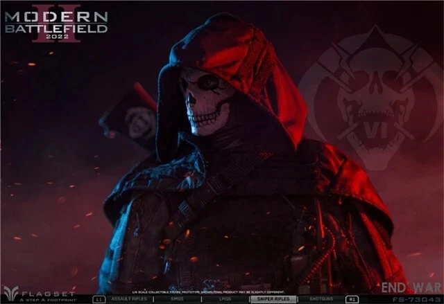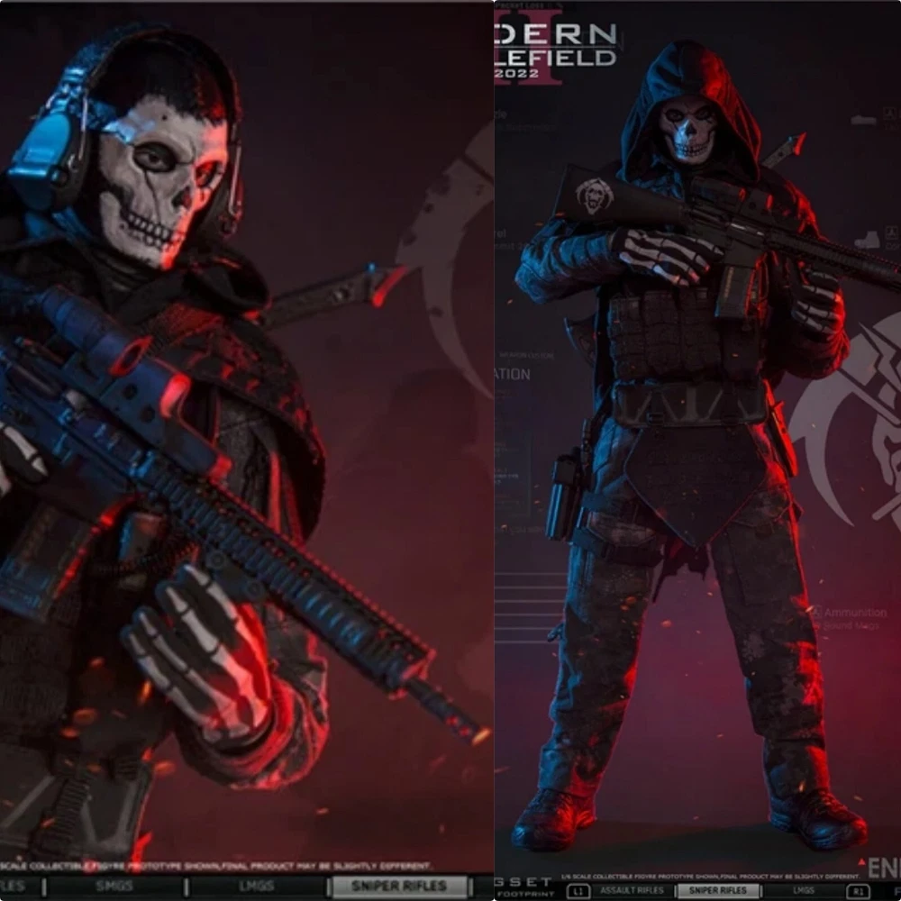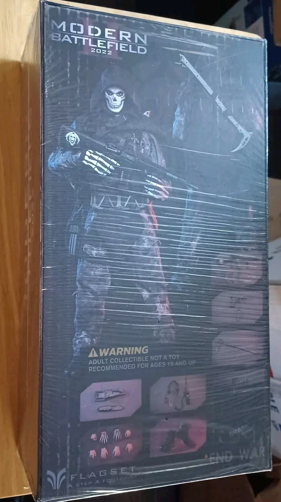 Material: ABS Scale: 1/6 Box Contents: - Body - Heads - Fertilizer lining - Tactical top - Tactical pants - Cloak - Body armor - Triple Rifle Magazine Jacket - Walkie Talkie Case - Tactical Pistol Set - Rifle - 4 Rifle magazines - Pistol - Pistol magazine - Dagger set - Dagger - Sickle strap - Sickle - Skeleton Gloves - Belt - Walkie Talkie - Tactical headset - 6 Changeable hands - Boots - Safety buckle - 2 Light sticks - Rifle sight A - Rifle sight B - Rifle Grip - Bracket