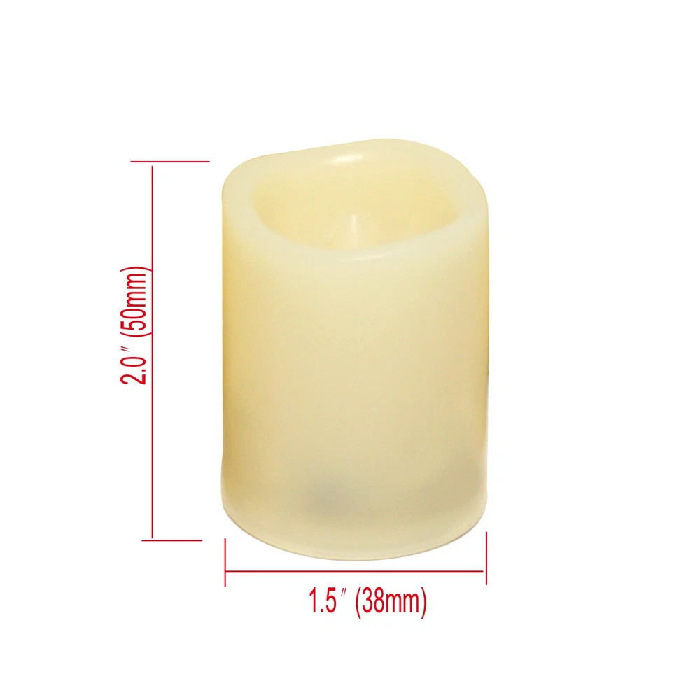 Decorating your world. Decorative LED votive candles and tea lights are ideal for home, kitchen, table, garden, kitchen, yard, holiday, seasonal, event, festival, winter, party, wedding, Valentine’s Day, Easter, Mother’s Day decorations. Battery powered flameless LED candle lights are your first choice of home decor. For example, you can use these electric candles to decorate your dining table on Thanksgiving or Christmas party on Xmas Day. Warm and romantic ambience. Flickering battery operated LED votive candles with warm white lights create a warm, peace and romantic atmosphere. In addition, a set of flameless electrical candles is a great gift choice in holiday season and parties, for example, these realistic battery candles with flicker are usually used as Thanksgiving, Christmas or New Year gifts or wedding party favors. Long lasting battery candles. 120+ glowing hours on one CR2032 button cell is among the longest battery life in the market. With the energy saving technology, the LED tealight /votive candles give off bright light on minimum battery consumption. No real wax votives and tea lights have such a long “burning” time. Realistic look and flicker. These top quality battery votive candles / tea lights are made of flickering LED bulb and plastic with real wax appearance. The small resin candles flicker like real candles and give off soft glowing light. Safe and eco-friendly. No risk of fire, no fume and no CO2 emissions. Battery powered LED candle lights are safe to use with, especially when you have kids, seniors and pets at home.