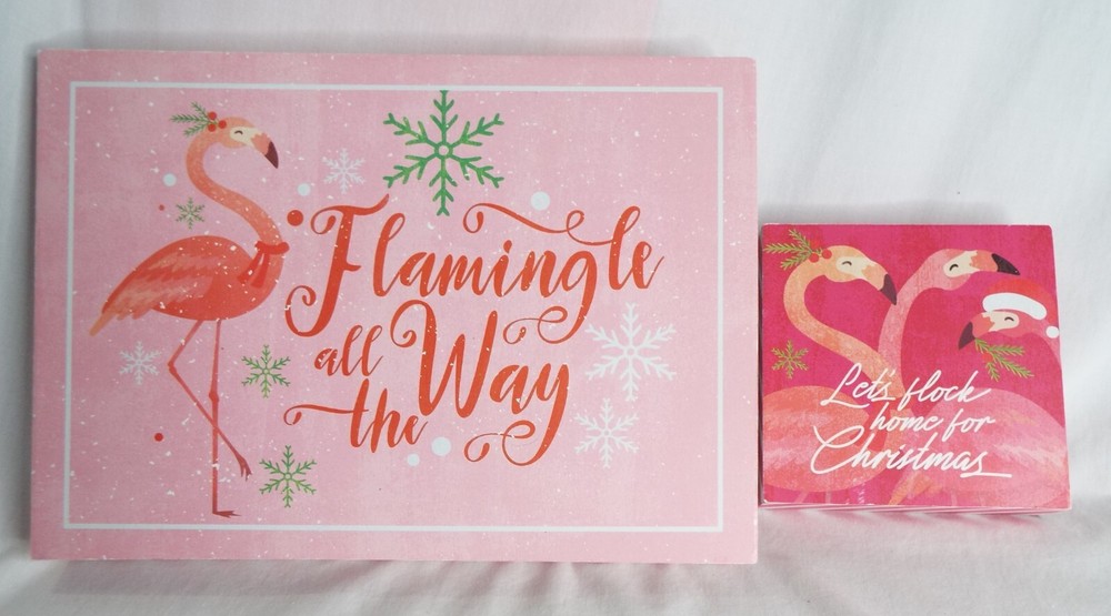 Hobby Lobby Wall Art * Flamingle All The Way 13X8X2" * Lets Flock Home for Christmas 6X6X2 inch Framed Wood Hobby Lobby Wall Art Never was hung up. They have hangers on the back for easy and safe I nternational Buyers – Please Note: Import duties, taxes, and charges are not included in the item price or shipping cost. These charges are the buyer's responsibility. Please check with your country's customs office to determine what these additional costs will be prior to bidding or buying . I Ship Daily!!
