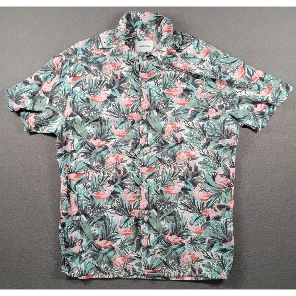 Flamingo Shirt Men's Medium All Over Print Goodfellow Hawaiian Tropical Beach
